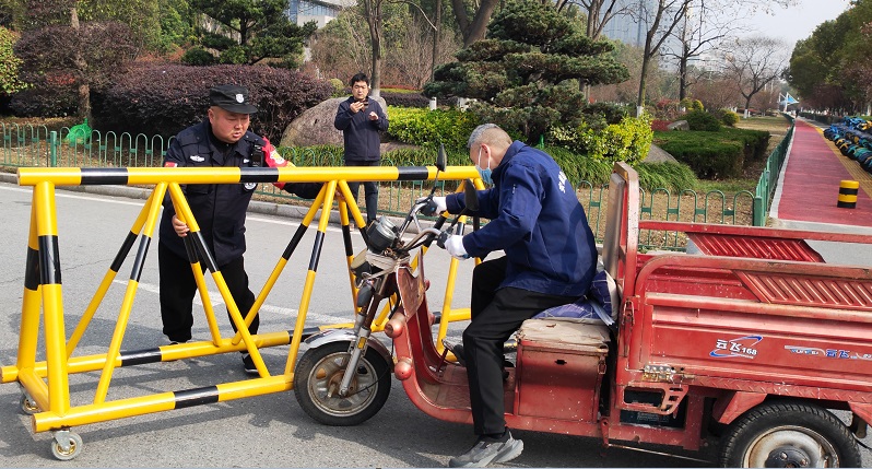 下午2点整,演练正式开始。按照预定脚本,一名行为异常、神情恍惚的“歹徒”手持凶器试图强行闯入校园。面对突如其来的险情,正在执勤的安保人员第一时间察觉异常,立即启动应急预案,一边迅速通过对讲机报告情况并拨打110报警,同时组织力量紧急疏散周边师生,引导大家向安全区域撤离;另一边,安保人员迅速拿起防暴盾牌、钢叉、警棍等器械,果断组成防御队形,利用战术配合将“歹徒”牢牢阻挡在校门之外。