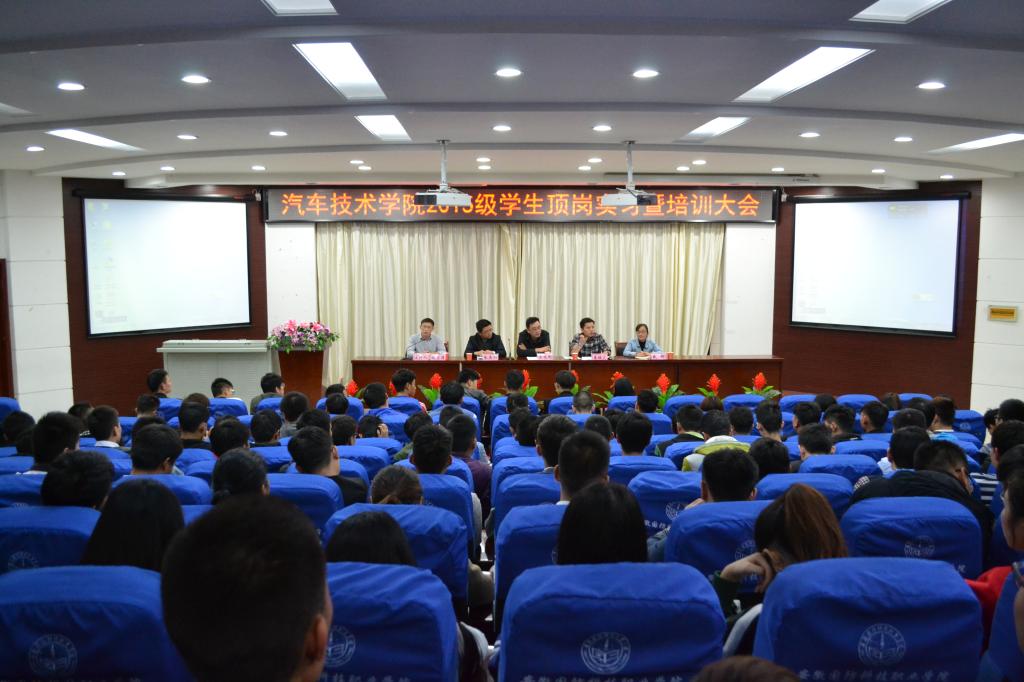 顶岗实习是高职教学的一个重要环节,其质量关系到能否培养出合格的高职毕业生。为认真做好该项工作,引导学生做好实习准备,了解顶岗实习的重要性,2017年10月11日晚上7:30,汽车技术学院在图书馆报告厅隆重召开2015级学生顶岗实习动员培训大会。汽车技术学院党总支副书记余桂刚、汽车技术学院副院长姜继文、汽车技术学院学生工作办公室朱其阳、学院就业指导教师戴柳出席了本次大会,会议由学院团总支书记杨志清主持。