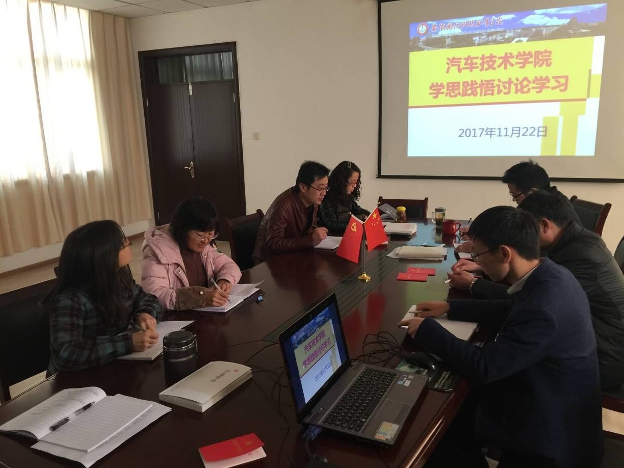本网讯(汽车技术学院 戴柳) 根据安徽省国防科学技术工业办公室《关于学习《学思践悟》的通知》文件要求,11月22日14:10、15:00,汽车技术学院第一支部、第二支部在行政楼415会议室分别召开《学思践悟》讨论学习会议,汽车技术学院全体党员同志参加学习。