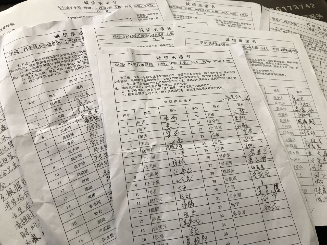 4月21日-26日,各班级分别利用安全教育主题班会、主题交流发言以及安全教育主题签名活动等不同的形式向同学们宣传交通安全、消防安全、网络安全、食品安全、杜绝不良网贷等校园安全的工作,重点分析下河游泳的危害性并传授防范溺水事故相关急救知识。各班级还组织学生签订了严禁学生下河(塘)游泳的诚信承诺书,并要求全体同学提高认识,自觉遵守学校的规定,做文明大学生。
