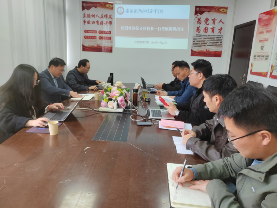 4月23日下午,校党委副书记、校长徐正红率校双高建设办主任韩玉龙、教务处副处长白斌丽一行莅临经贸管理学院,就职教本科建设工作开展专题调研。学院党政领导班子成员、专业负责人及骨干教师代表参加调研座谈。