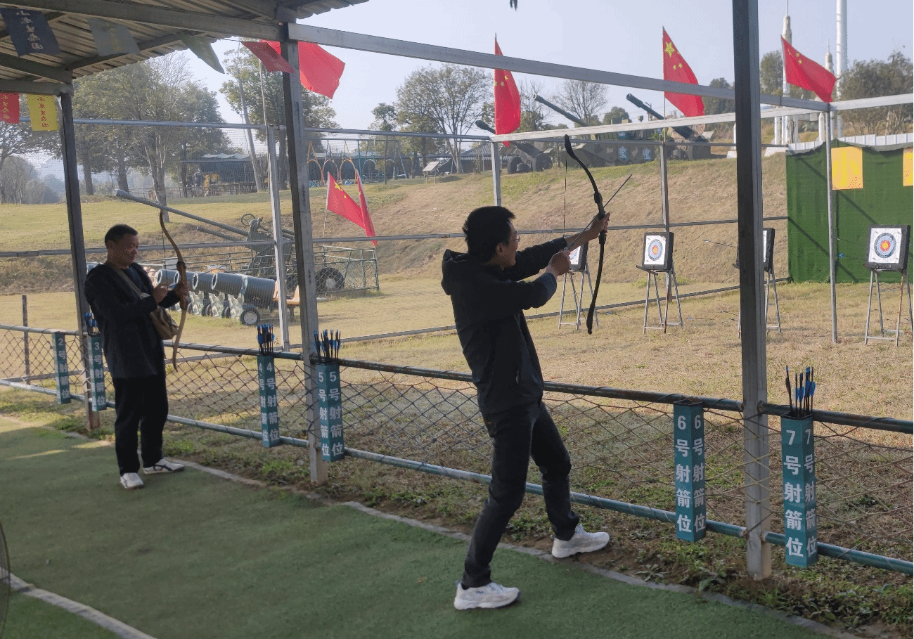 竞技类项目同样精彩纷呈。射箭场上,职工们摆好姿势拉弓瞄准,展现出十足的专注与活力;射击场上,大家在安全指导下体验射击,感受精准射击的魅力。网红桥上,随着音乐晃动的身影与阵阵欢呼交织成欢乐的乐章;抓鸡活动中,职工们灵活追逐,成功捕获的喜悦溢于言表。