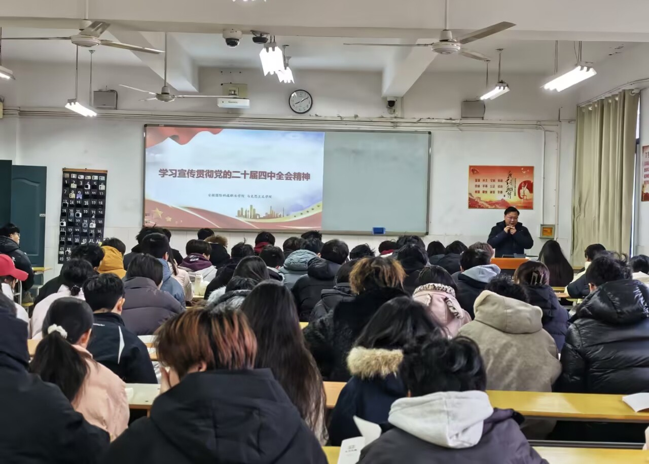 2026年1月5日至6日,校党委副书记、校长徐正红先后为25转段计应1班、25转段计应2班及25网络3班讲授“学习贯彻党的二十届四中全会精神”专题。结合职业教育服务国家战略的新使命,勉励同学们“以思想铸魂、以技能立身、以行动践行”,在智能制造、数字经济等新赛道上锤炼过硬本领,争做高素质技术技能人才。