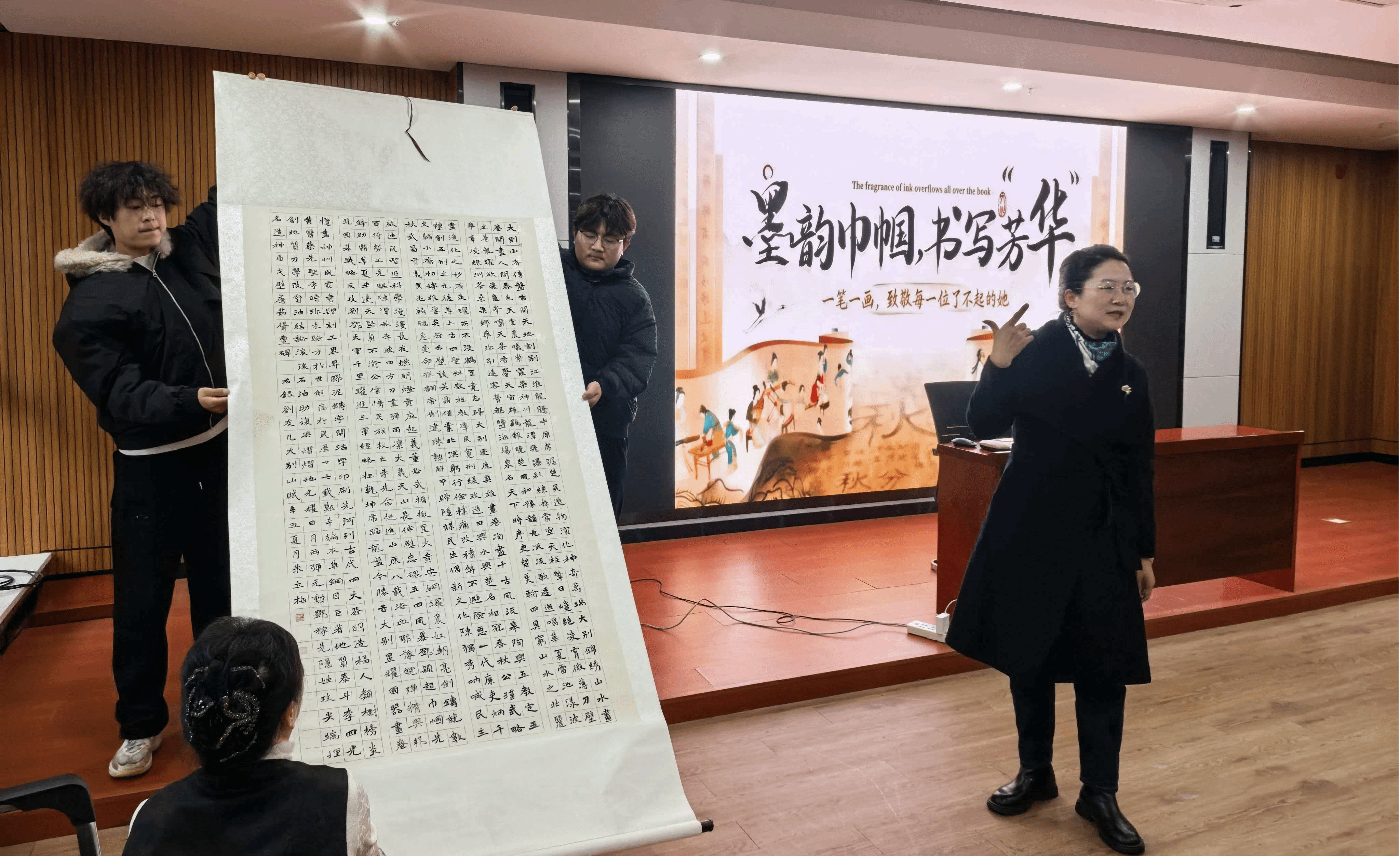 挥毫泼墨雅韵,涵养雅致生活。3月18日,水墨丹青活动在校产教融合大楼1号报告厅如约举办,为喜爱书法的女教职工提供了交流学习的平台。活动现场,六安市书法家协会副主席朱立梅细致讲解书法技巧并现场指导,女职工们凝神静气、提笔挥毫,在临摹书法作品的过程中感受中华传统文化的独特魅力,陶冶情操、涵养心性,在笔墨书香中度过一段雅致时光。