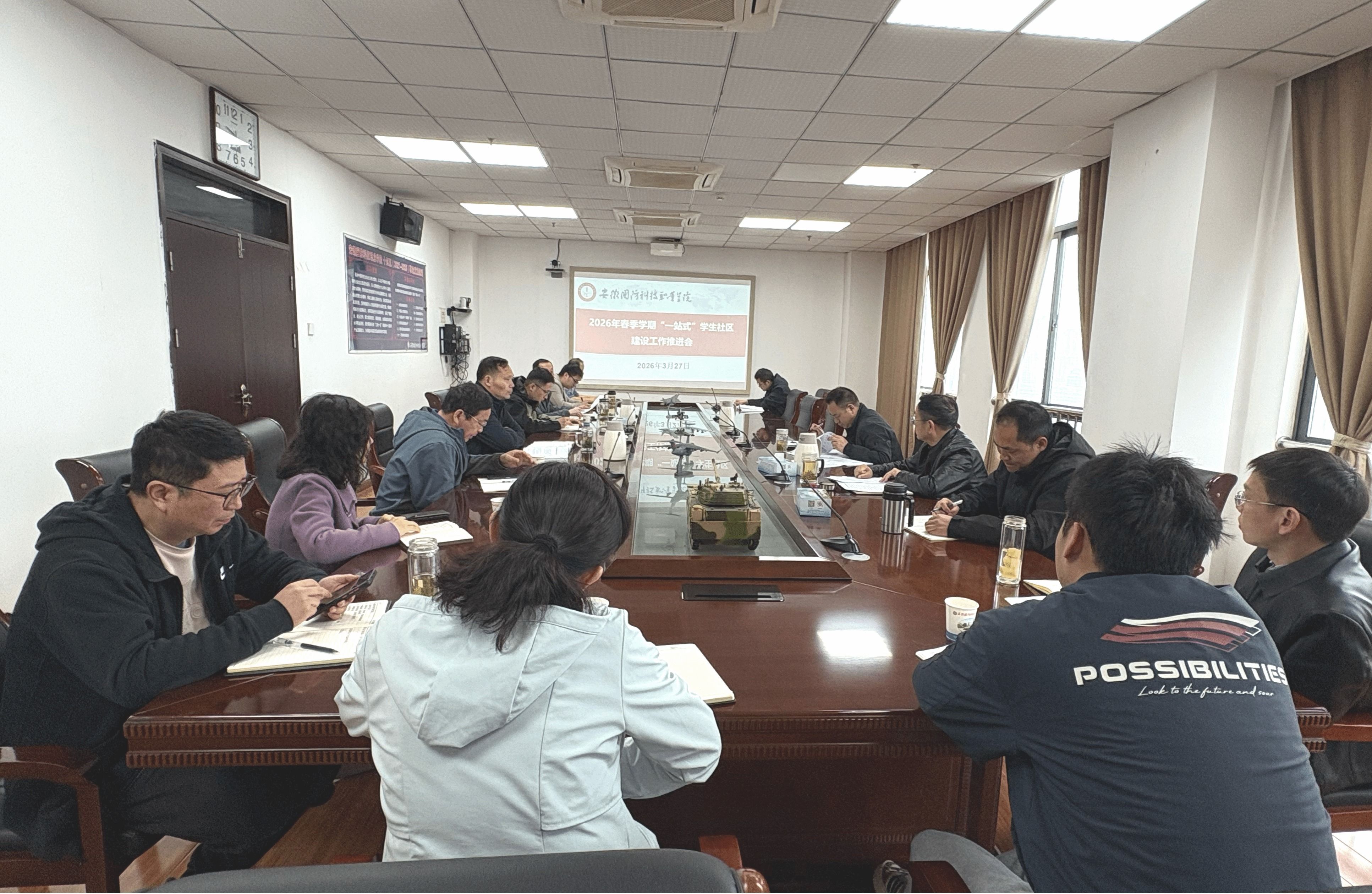会上,学生处(部)副处长张志鸿通报了我校在2025年安徽省高校“一站式”学生社区建设考核评价中得分情况并全面分析了我校建设工作中的优势亮点与薄弱环节。各牵头部门结合分工依次汇报了前期工作开展情况及2026年学生社区建设工作计划,并围绕学校“一站式”学生社区建设情况建言献策。