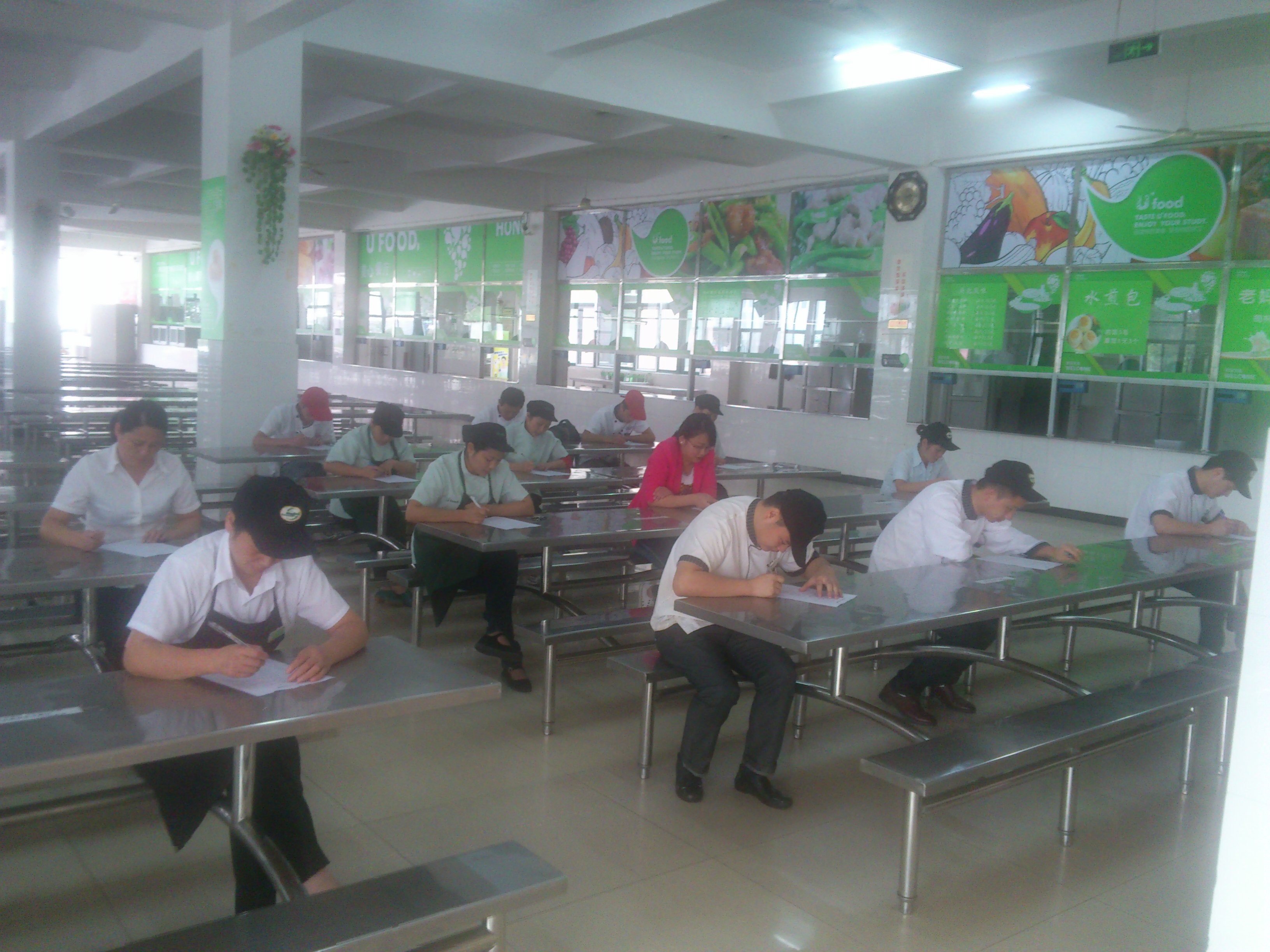 为进一步推动我院食堂食品安全卫生工作,加强对食堂从业人员和管理人员的食品安全卫生知识教育,普及食品安全卫生知识,后勤服务中心在开学后积极组织食堂全体员工开展了食品安全卫生知识的学习和培训工作,让食堂全体员工更加深刻地了解和认识了食品安全卫生的重要性。为巩固培训成果,后勤服务中心计划分批次地对食堂全体工作人员进行食品卫生安全知识测试。首批测试于9月30日下午在食堂一楼成功开展,在此次测试中,多名员工获得满分,一楼美心餐厅取得了平均分87分的好成绩。