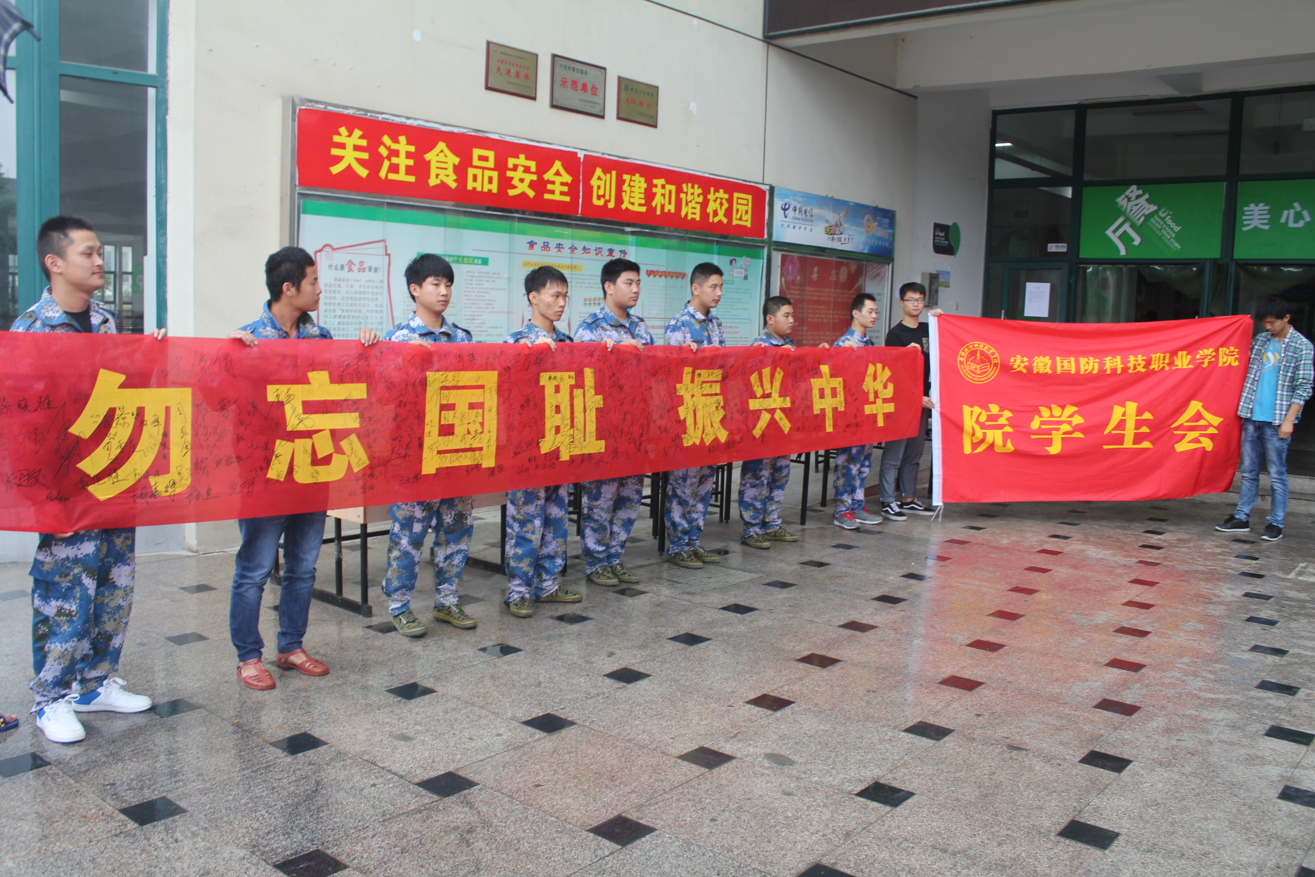 由院学生会主办的“铭记历史、增强历史责任感”纪念“九一八”事变83周年签名活动在学院食堂门前举行,全院同学在印有“勿忘国耻 振兴中华”的横幅上签名,理性的表达爱国之情和报国之志。