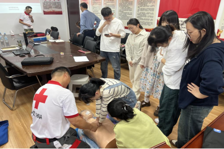 培训会上,学院党总支书记刘峰强调,辅导员握应急救护技能不仅是保障学生生命安全的需要,更是立德树人和创建平安校园的重要一环。希望全体辅导员认真学习,掌握要领,成为校园安全可靠的“第一响应人”。培训过程中,红十字会的资深培训师通过生动的理论讲解与规范的实操演示,系统介绍了心肺复苏(CPR)的全流程、自动体外除颤器(AED)的使用方法、气道异物梗阻的急救(海姆立克急救法)以及常见意外伤害的包扎处理等关键急救知识。培训师结合校园环境中可能遇到的实际情况,重点讲解了操作要点、注意事项及法律依据,内容详实,针对性强。
