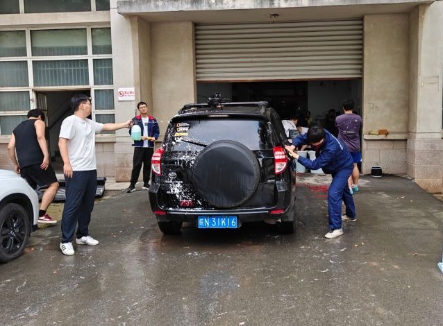 本网讯 为充分发挥党团组织的凝聚力和战斗力,进一步提升为民服务技能和水平,9月28日下午,汽车技术学院党总支联合汽车科技创新协会在实训楼一楼东侧卷帘门处开展“我用技能办实事——车辆清洗”志愿服务活动,学院部分教师党员、入党积极分子及汽车科技创新协会成员组成志愿服务队,为全校教职工提供车辆清洗服务。