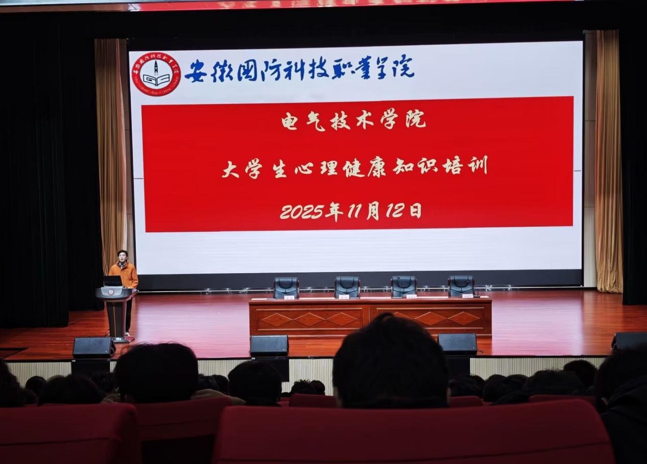 本网讯 11月12日下午,电气技术学院在多功能报告厅开展大学生心理健康知识培训,各班级辅导员、学生干部及学生代表参加。本次培训由学院心理辅导员杨莹光主讲。