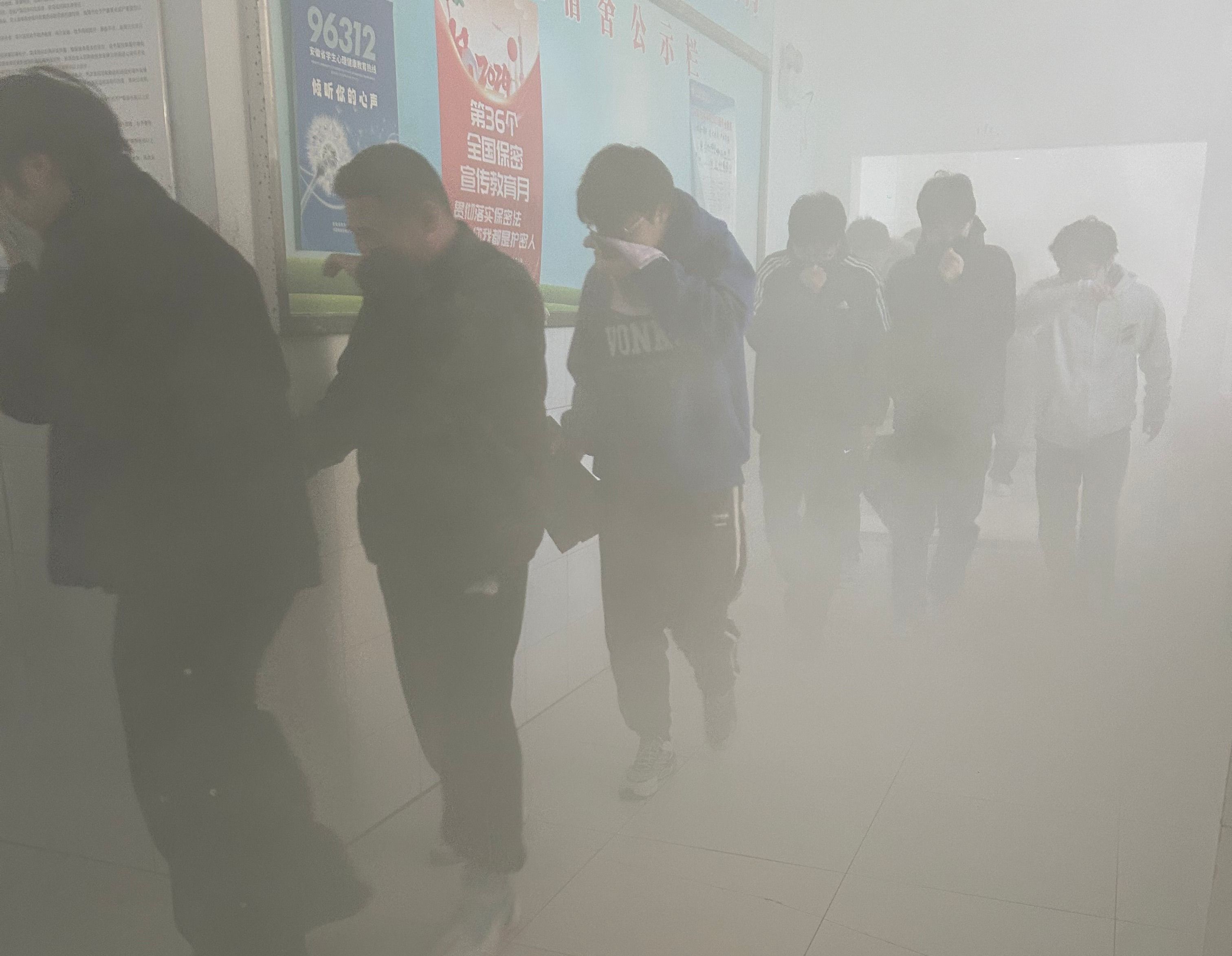 下午4点40分,随着消防警报声骤然响起,演练正式启动。学生社区管理员迅速启动应急预案,发出紧急疏散指令。同学们立即放下手中物品,关闭宿舍电源,取出湿毛巾捂住口鼻,在寝室长的带领下,按照预设的疏散路线有序撤离。各楼层安全出口、楼梯转角处,辅导员与学生宿舍网格员组成的“引导员”全程值守,提醒学生保持秩序、避免拥挤推搡。整个撤离过程中,同学们表现出良好的组织性和纪律性,无吵闹、滞留等情况,所有学生均安全抵达指定的安全集合点。