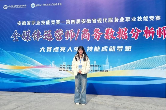 本网讯(经贸管理学院 吴英)11月23日,由安徽省人力资源和社会保障厅指导、安徽省物流协会与安徽省技能人才管理服务中心联合主办的安徽省职业技能竞赛——第四届安徽省现代服务业职业技能竞赛“商务数据分析师”赛项在安徽工业经济职业技术学院圆满落幕。本次竞赛吸引全省多所院校及相关企事业单位共计 57 名选手参赛。我校经贸管理学院电子商务专业学生唐红燕凭借扎实的专业功底与沉稳的临场表现,在学生组激烈比拼中脱颖而出,斩获第3名,荣获省级二等奖。