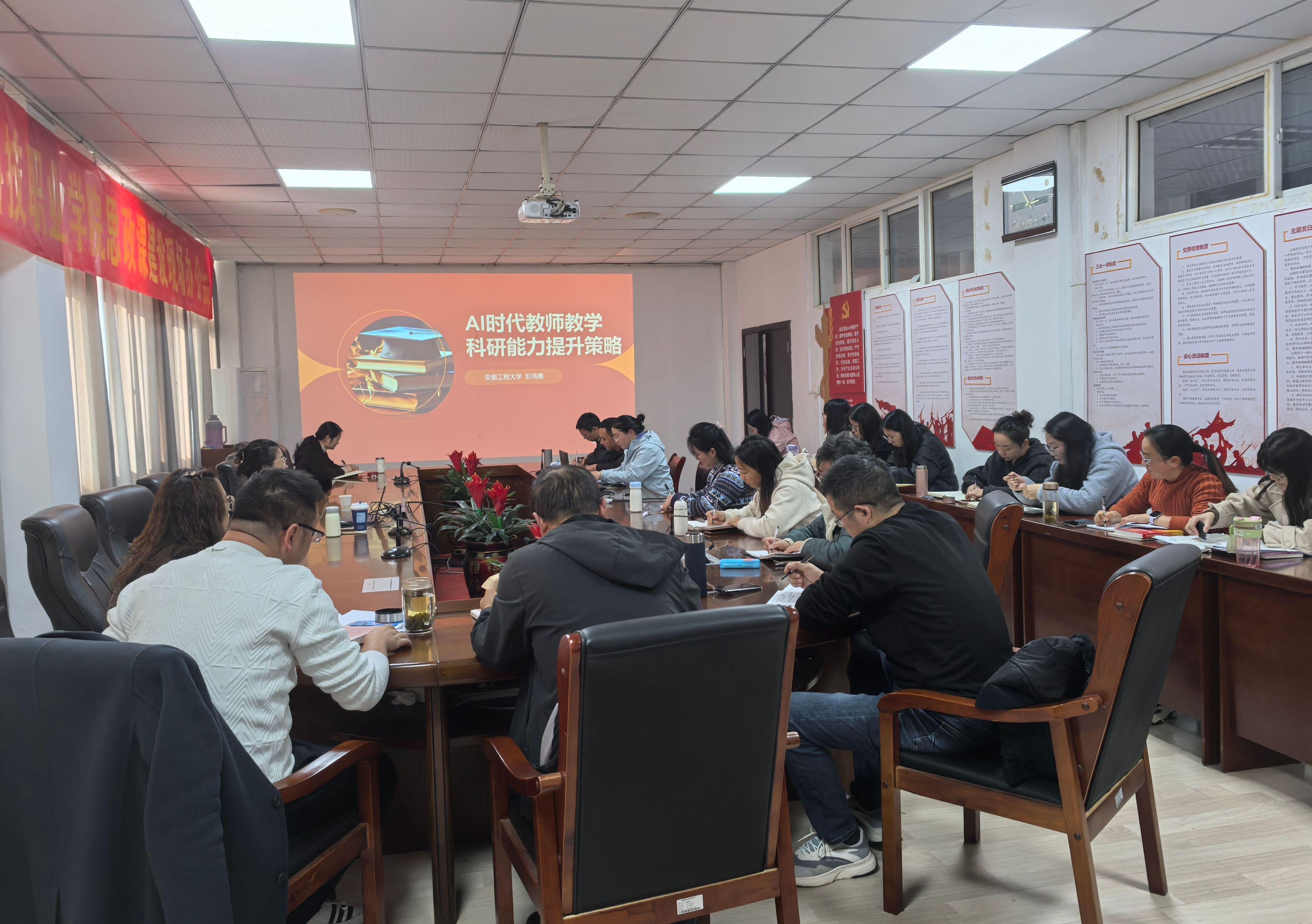 本网讯(马克思主义学院 汤晓莉)为深入推进“质量思政”建设要求,持续提升思政课教师的教学与科研能力,11月26日下午,马克思主义学院特邀安徽工程大学彭鸿雁教授作题为《AI时代教师教学科研能力提升策略》的学术讲座。学院全体教师参加,讲座由校党委委员、马克思主义学院院长陈思主持。