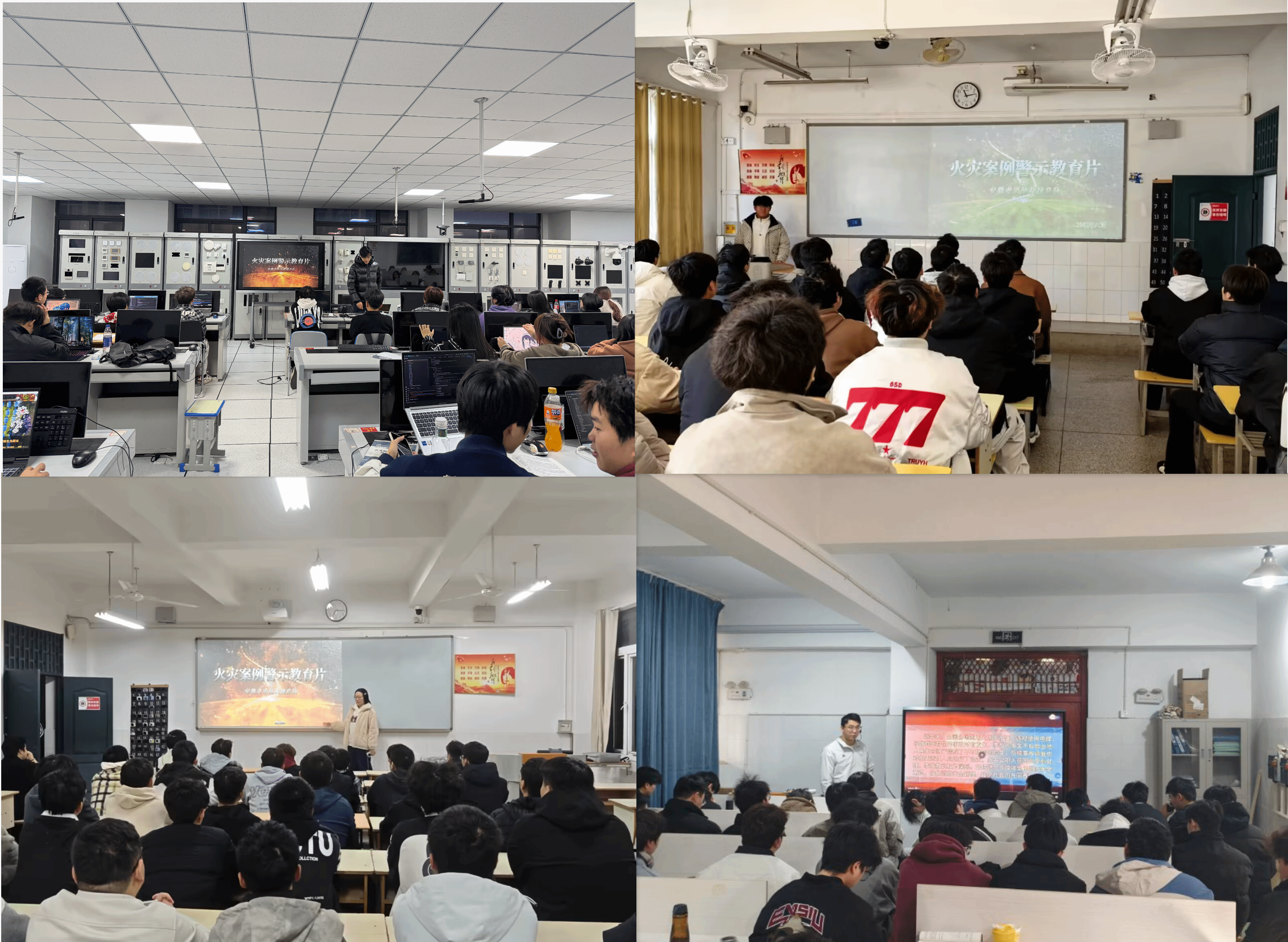 本网讯(电气技术学院 杨莹光)为深刻吸取近年来发生的火灾事故教训,筑牢校园消防安全防线,强化学生安全防范意识,按照“全省安全宣传月”和消防安全治本攻坚三年行动安排和学校工作安排,近日,电气技术学院组织开展火灾事故警示教育活动,以班级为单位观看安徽省消防救援总队制作的火灾案例警示教育视频,以真实案例敲响消防安全警钟。