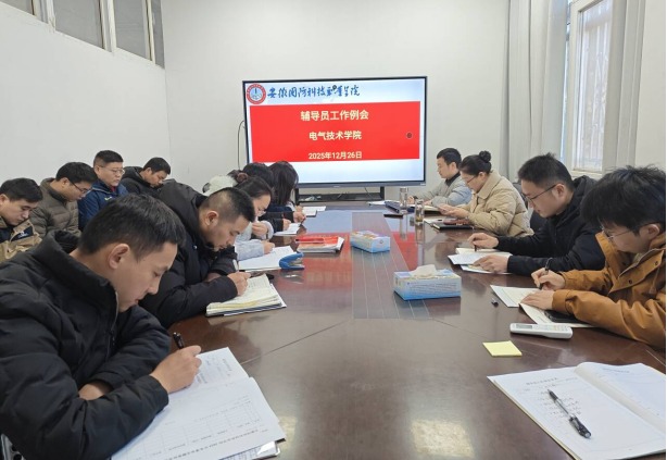 本网讯(电气技术学院 陈俊)为系统部署期末各项学生教育、管理与服务工作,谋划新学期工作,进一步提升辅导员队伍的专业素养与育人能力,12月26日下午,电气技术学院组织召开期末学生工作例会。电气技术学院党总支副书记张丽、团总支书记陈俊和全体专兼职辅导员参加会议。