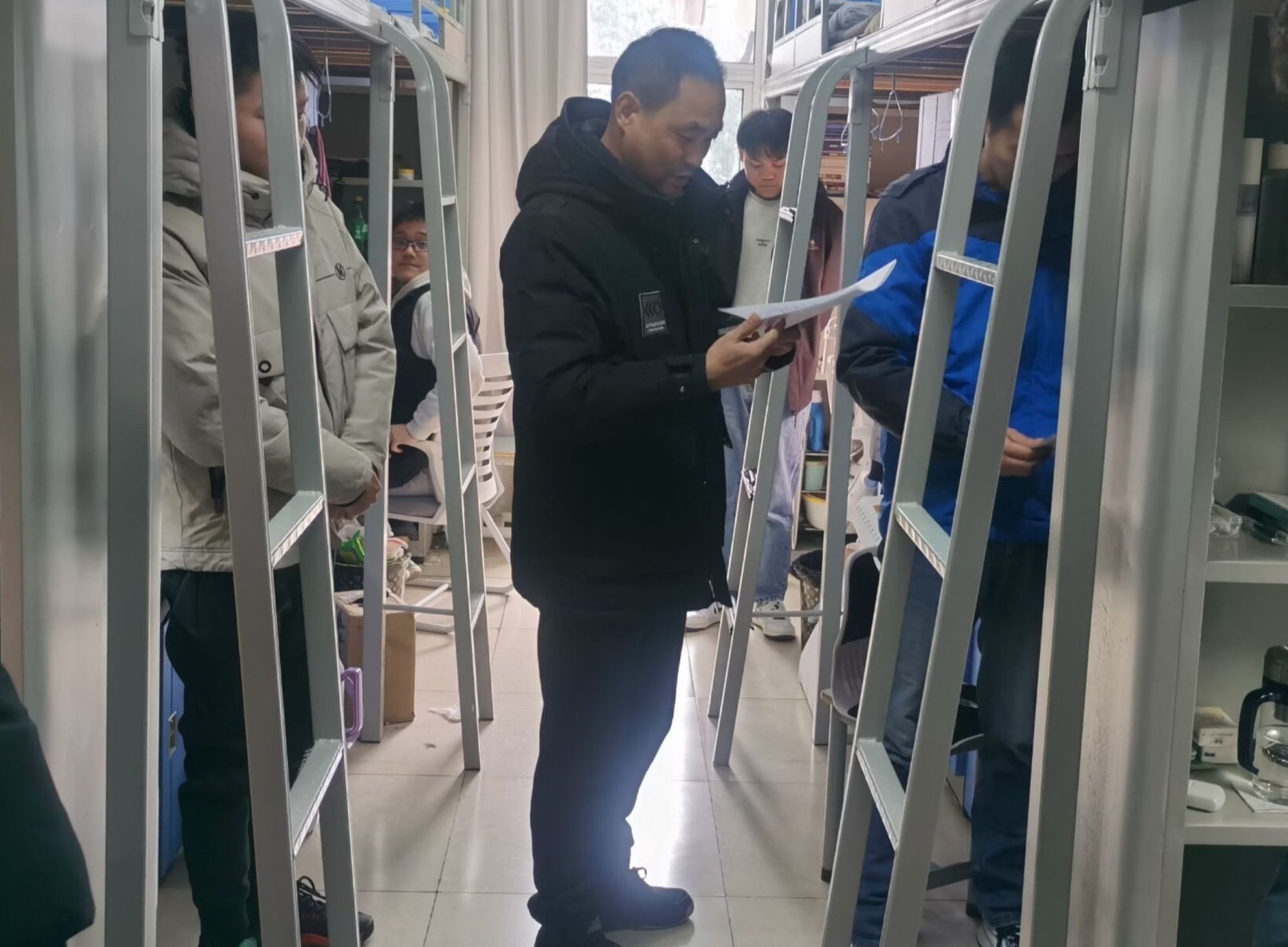 检查过程中,老师们逐间走访,重点排查宿舍内是否存放或使用违规电器、私拉乱接电线、存放易燃易爆物品等消防安全隐患,并对宿舍卫生状况进行了细致督查。检查期间,老师们与同学们亲切交流,提醒同学们做好宿舍通风预防传染病,叮嘱元旦离校同学注意出行安全,留校同学遵守宿舍管理制度,注意消防安全,合理安排作息,度过一个平安、温馨的元旦假期。