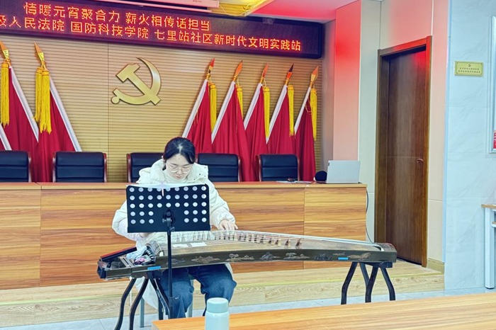 活动在主持人的开场致辞中拉开帷幕,随后全体人员共同观看国家主席习近平二〇二六年新年贺词,感悟初心使命,凝聚奋进力量。活动中,城市建设学院的青年学生代表带来了精彩的文艺表演:古筝演奏《琵琶语》宛转悠扬,如诉如泣,尽显东方古韵之美;歌曲演唱《朵》饱含深情,用音乐诉说着向往;笛子独奏《春节序曲》轻越灵动,展现了春节的热闹气氛。