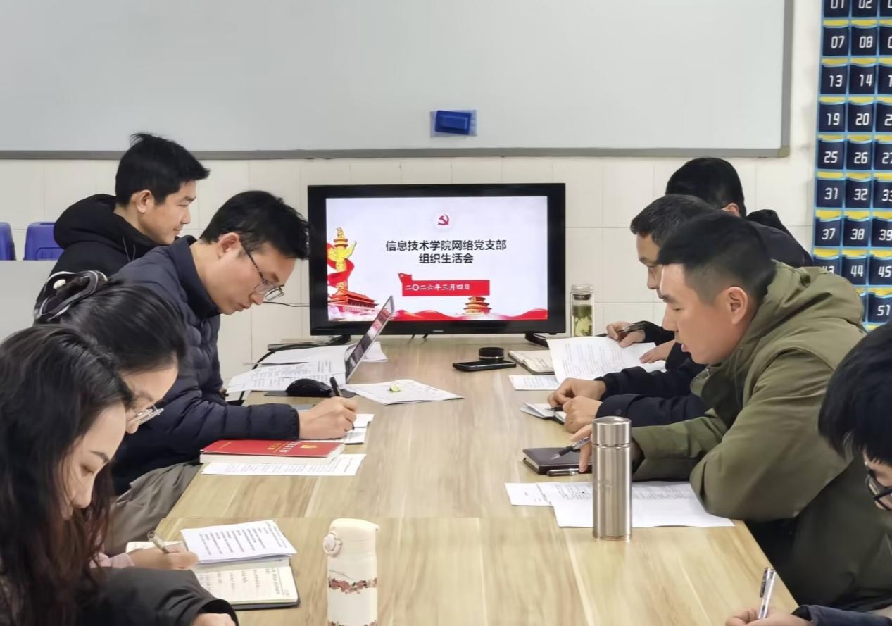 本网讯(信息技术学院 李珈)为深入学习贯彻习近平新时代中国特色社会主义思想和党的二十届四中全会精神,切实开好年度基层党组织组织生活会和做好民主评议党员工作,3月4日下午,信息技术学院网络党支部在教1楼103教室召开了2025年度组织生活会暨民主评议党员会议。信息技术学院党总支书记王胜及网络党支部全体党员参加了会议,会议由党支部书记蔡正保主持。