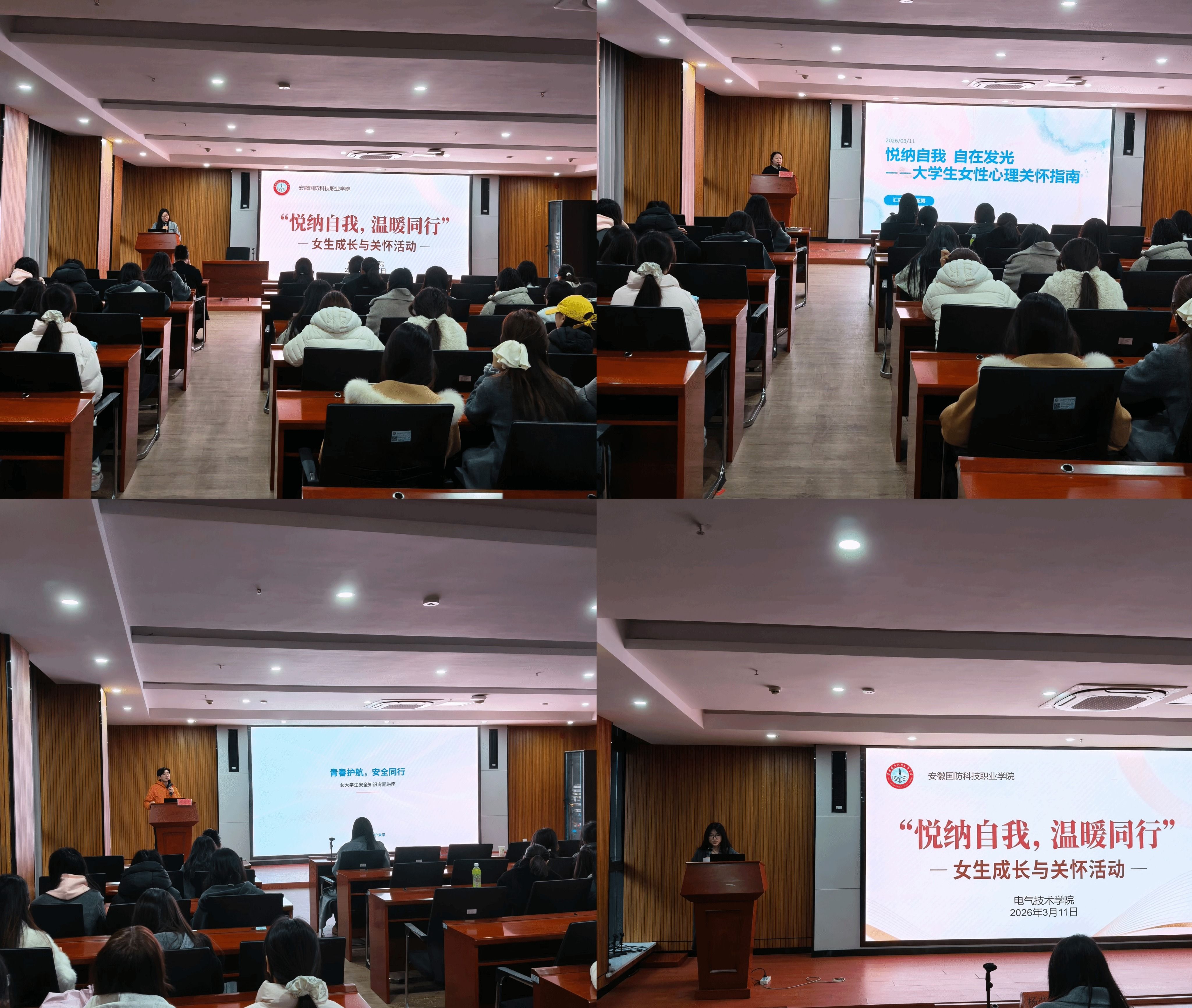 活动设置了心理知识讲座和安全知识讲座两个环节。校心理中心汪亚男老师结合女生身心发展特点,围绕自信培养、情绪调节与自我接纳等主题,通过生动的案例和专业的调适方法,帮助女生关爱自我,培养乐观平和情绪。辅导员杨莹光老师从人身财产安全等多个维度,普及安全知识,培养女生自我保护意识。