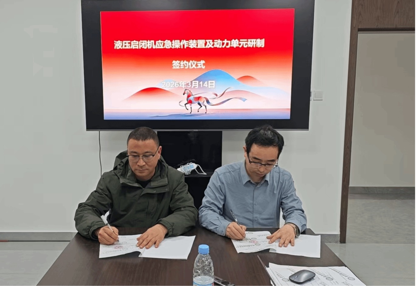 验收结束后,校企双方于现场签署了《液压启闭机应急操作装置及动力单元研制》项目合作协议,双方将围绕液压启闭机应急操作装置研发进一步深化合作,共同推进水利装备技术升级领域的创新发展。
