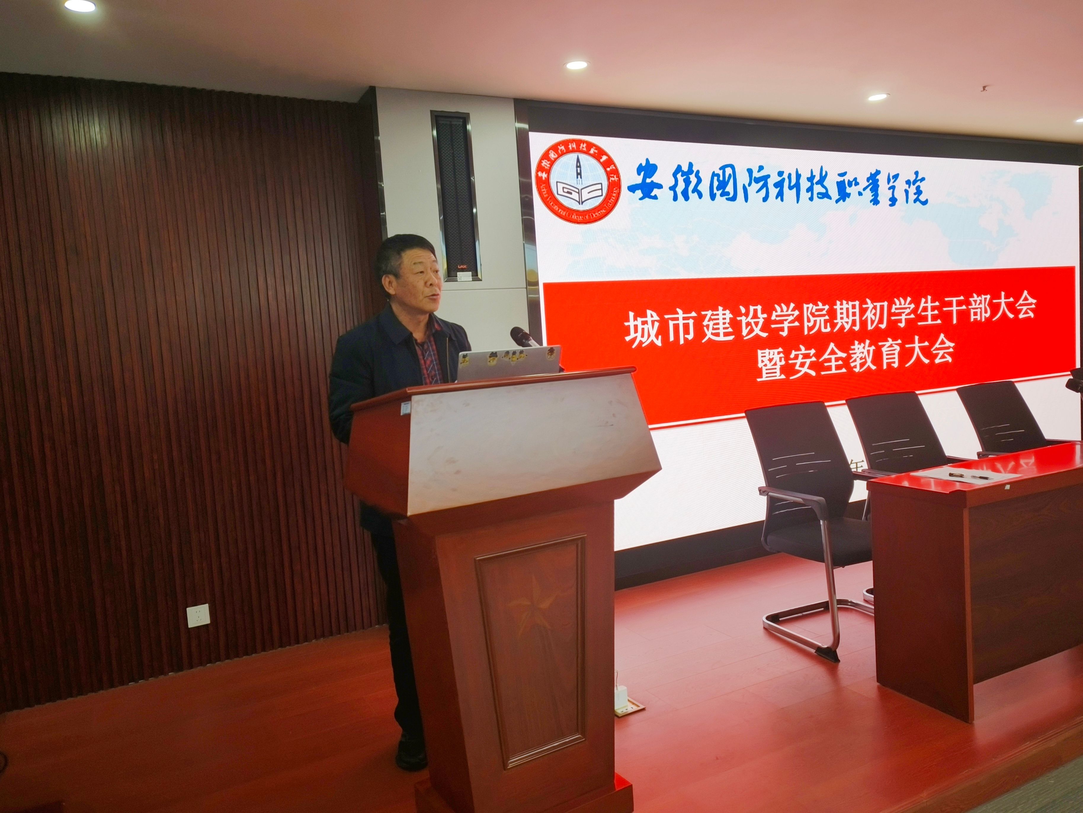本网讯(城市建设学院 袁野)为进一步凝聚学生干部力量,明确新学期工作方向,强化学生干部责任担当,筑牢校园安全防线,近日,城市建设学院召开2025-2026学年第二学期期初学生干部大会暨安全教育大会。学院党总支书记张宗江,副书记叶高洁,辅导员康垚、王俊出席会议,团总支书记袁野主持会议,学院团总支学生会主要学生干部、建筑工程造价协会与会计协会主要学生干部及各班级学生干部代表参会。