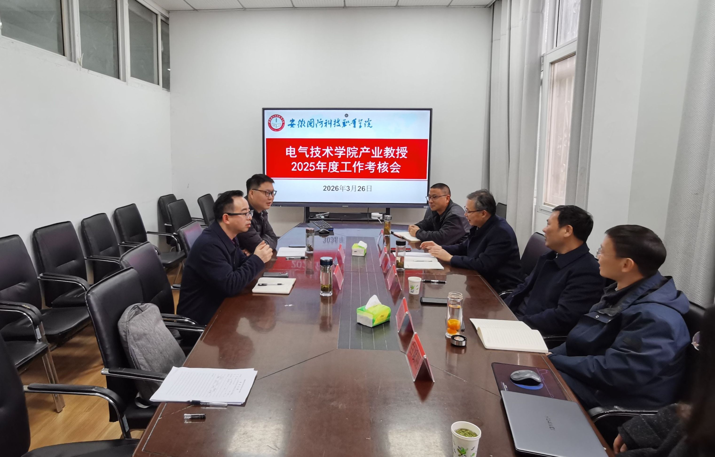 本网讯(电气技术学院 马骙)3月26日下午,电气技术学院产业教授2025年度工作考核会及产业教授聘用签约仪式在知行楼102室顺利举行。校企合作办主任李中永主持会议,电气技术学院院长李翔、组织人事处副处长(主持工作)杨志清、教务处副处长白斌丽、电气技术学院副院长江治国、产业教授黄振东及青年教师代表张超参加本次活动。