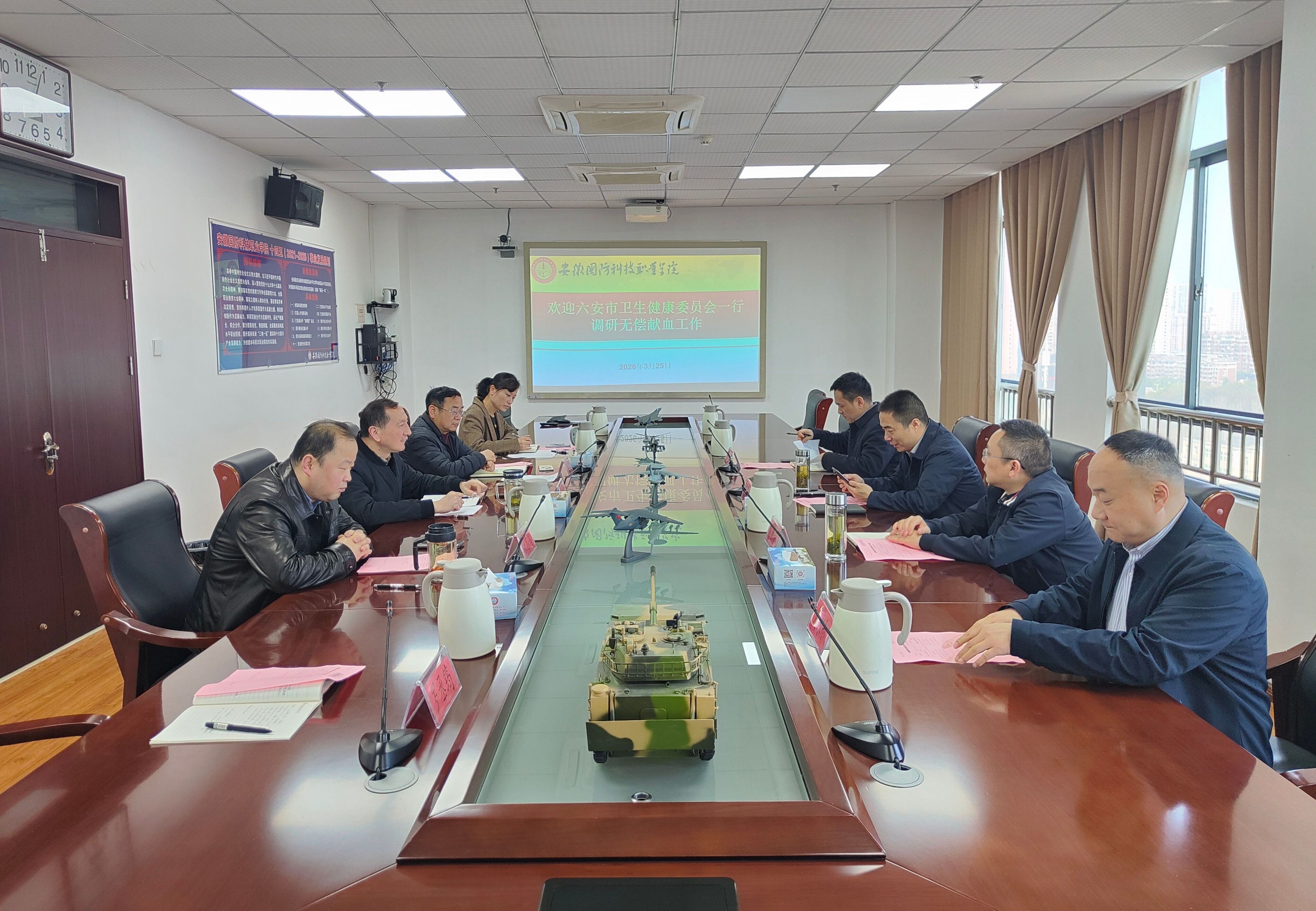 市卫健委调研组对我校长期以来积极支持无偿献血事业、持续组织开展无偿献血活动给予高度评价。调研组指出,安徽国防科技职业学院师生踊跃参与无偿献血,充分展现了新时代青年的责任与担当,为保障全市临床用血供应、推动无偿献血事业发展作出了积极贡献。调研组希望学校继续发挥自身优势,进一步加强无偿献血宣传教育,创新活动形式,引导更多青年学生加入到无偿献血公益事业中来,为保障人民群众生命健康贡献更大力量。