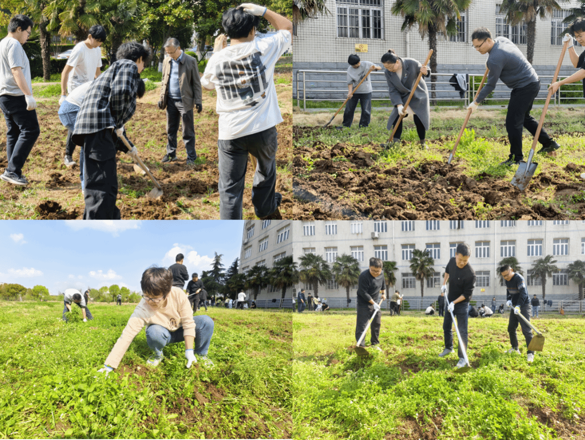 活动以党支部为单位划分责任区域,全体党员迅速投入劳动实践。大家手持锄头、铁锹等工具,分工协作、密切配合,俯身清除田间杂草、清理砖石瓦块,同步完成土地翻整作业,对劳动教育基地进行全面整理。教职工党员的昂扬斗志和饱满热情激发了学生入党积极分子对劳动的热情,他们纷纷躬身实践,感受劳动的价值和意义,此次活动不仅帮助同学们树立了正确的劳动观念,更在他们心中播下了服务他人、奉献社会的种子。