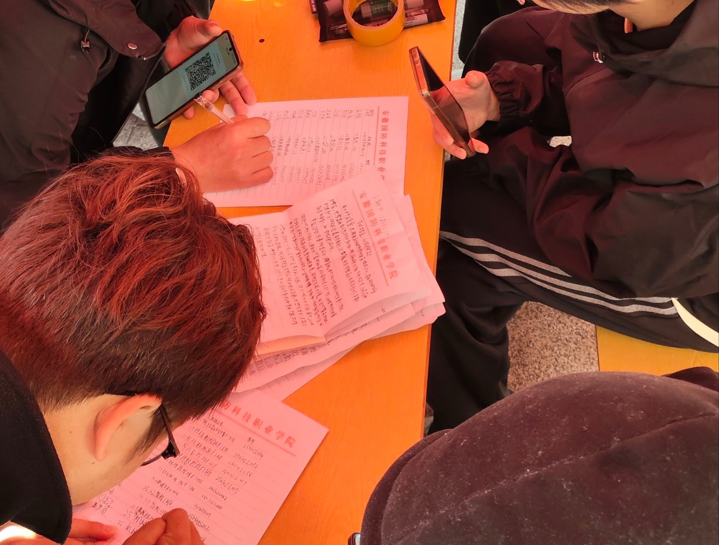 活动伊始,社团负责人杨智要求同学们整齐有序的排成4个队伍,组织的4名签到员随时准备,各个部门协调配合,让活动如火如荼的进行下来,协会签到员在12点准时收取在校学生对世界粮食日的起源意义勤俭理念的认识,形成校园家庭的完美闭环。