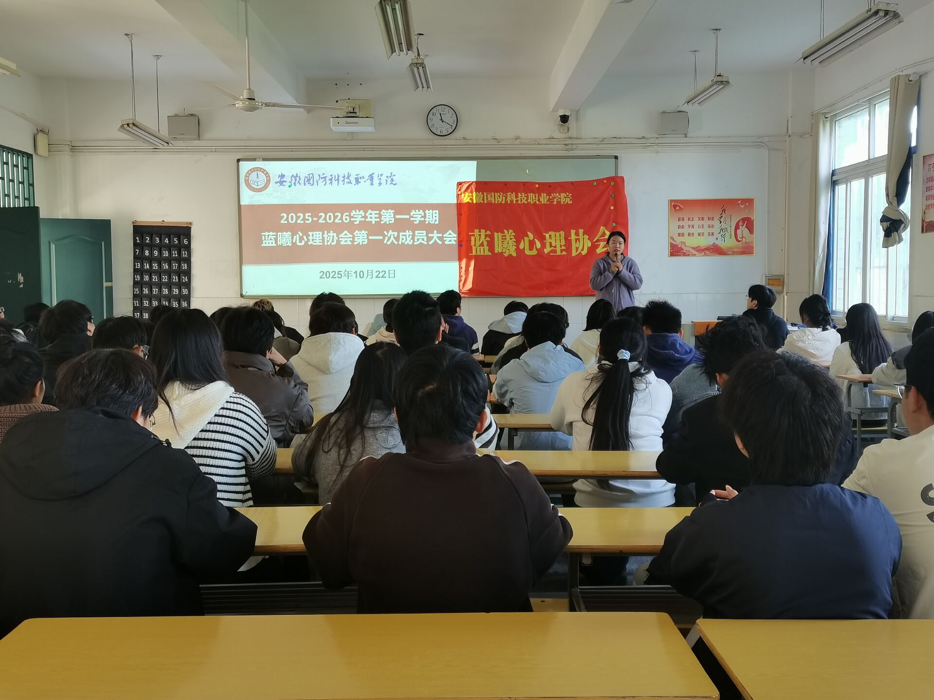 本网讯(学生通讯员 赵晨晨)为规范学生社团日常管理、推动社团活动有序开展,2025年10月22日,蓝曦心理协会在2教107召开了2025-2026学年第一学期第一次成员大会,本次会议围绕社团活动开展、思想建设、财务管理等多项重点工作作出详细部署。会议由副会长李强主持,指导老师汪亚男和全体成员参加。