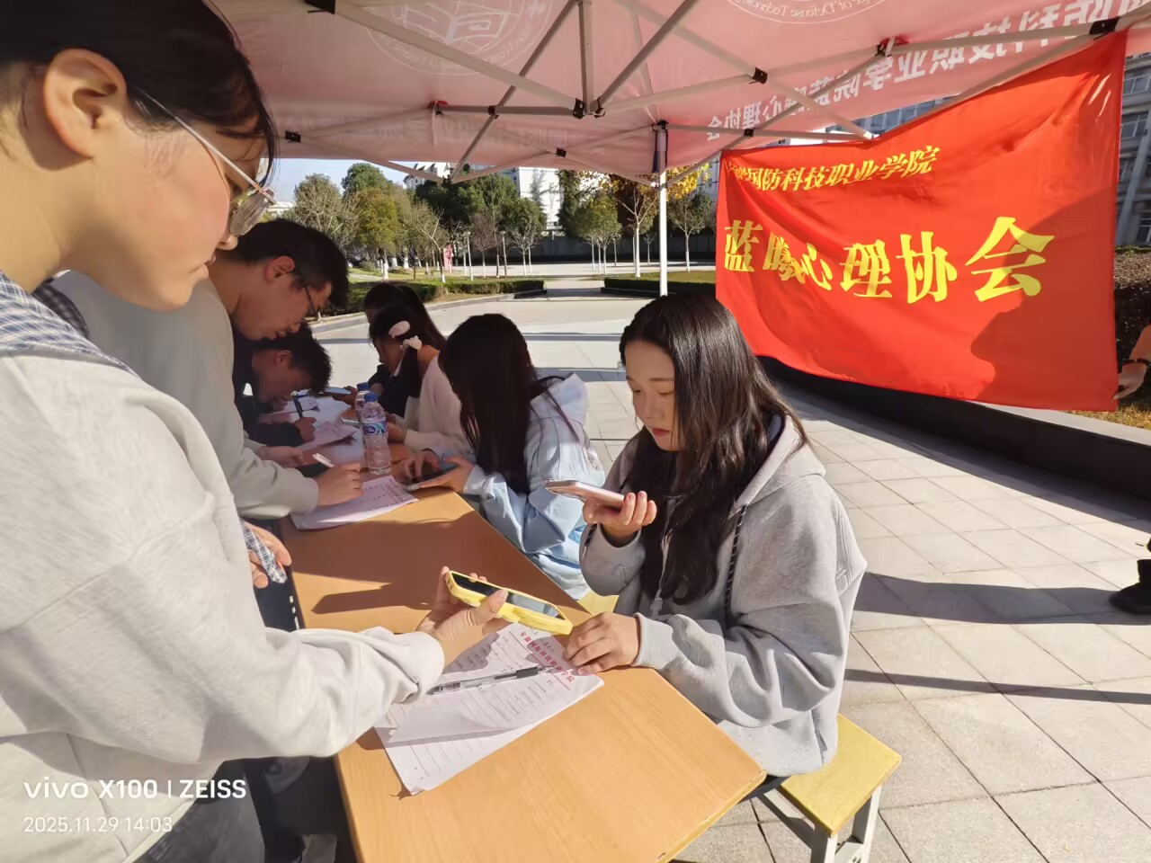 本网讯(学生通讯员谭凯旭)为丰富校园文化生活,鼓励学生主动发现与记录身边的美好,缓解日常学习生活压力,2025年11月29日下午,我校蓝曦心理协会于军工魂广场组织开展了“镜捕秋意,帧藏美好”主题摄影活动。活动吸引了许多热爱生活、喜爱摄影的同学积极参与,大家在秋日校园中漫步、观察、拍摄,共同感受自然与人文交融的宁静与愉悦。