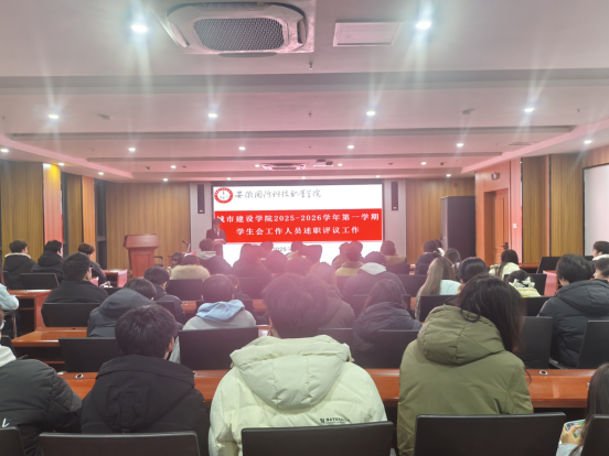 本网讯(城市建设学院 袁野)为进一步加强学生会工作人员管理监督,提升学生组织服务效能,根据校团〔2025〕85号关于开展 2025-2026 学年第一学期学生会工作人员述职评议工作的通知文件的要求,12月29日中午,城市建设学院在产教融合第一报告厅顺利开展2025-2026学年第一学期学生会工作人员述职报告。