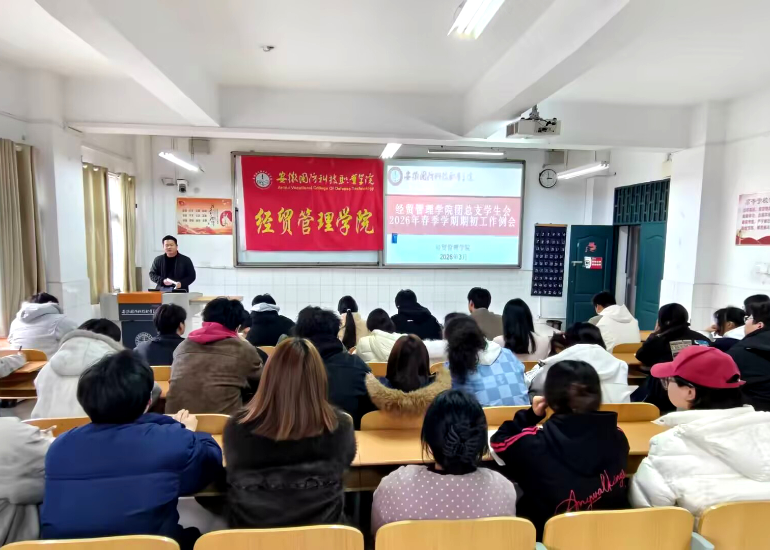 本网讯(学生通讯员 宋家鑫)为明确新学期工作思路,压实学生干部责任,凝聚团学骨干力量,确保团总支学生会各项工作高效有序推进,3月11日下午,经贸管理学院团总支学生会2026年春学期期初工作会议在二教105教室顺利召开。会议由院团总支书记陈玮主持,团总支学生会全体成员参会。
