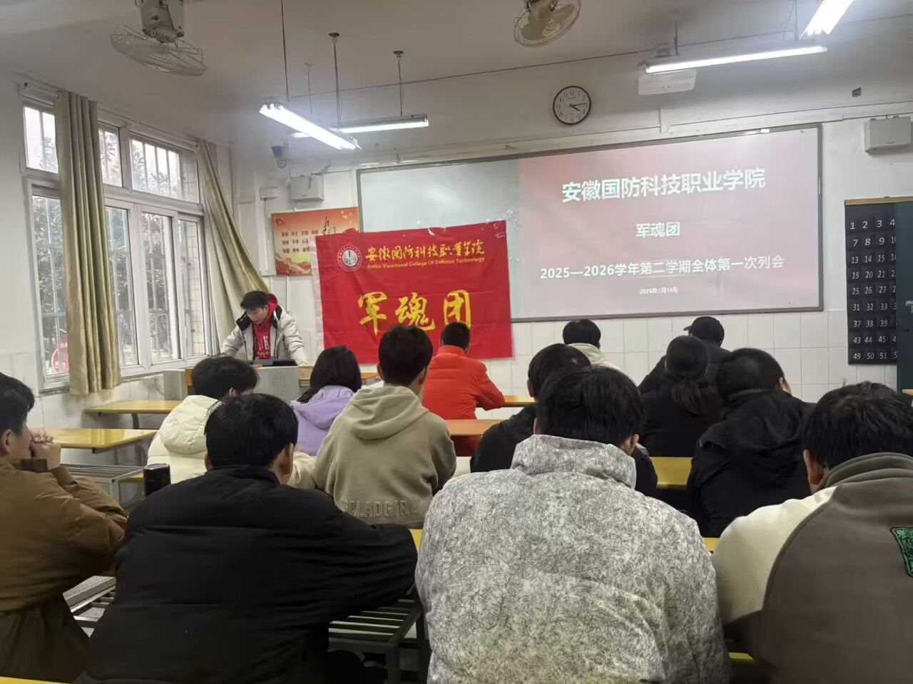 本网讯(学生通讯员 唐红斌)3月18日下午,军魂团在2教102教室召开本学期第一次全体例会。会议由军魂团会长唐红斌主持。