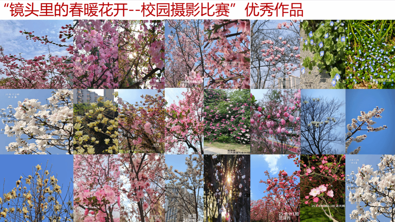 本次比赛以校园春日风光为创作主题,吸引了全校学子踊跃参与,用镜头捕捉校园里的盎然春意,用光影记录青春与自然交融的美好瞬间。比赛自启动以来,得到了学生们的积极响应,大家走出教室,漫步校园小径、花坛、草坪、林荫道,用相机和手机捕捉春日的踪迹。参赛作品均以校园为背景,聚焦 “春暖花开” 的核心意象。每一幅作品都视角独特,或聚焦一朵花的绽放,或定格一径春的景致,用光影诉说着校园春日的静谧与灵动,饱含着学生对校园春日的喜爱与赞美。