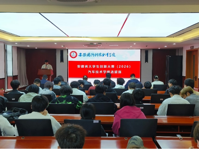 本网讯(学生通讯员 卜平凡)为激发学生创新精神,培育创业意识,提升创业能力,4月15日下午,汽车技术学院在校产教融合中心第二报告厅成功举办了安徽省大学生创新大赛院级选拔赛,汽车技术学院党总支书记孙良平、党总支副书记陈梦雅、辅导员张洋洋、黄世超、熊美艳、孙佳出席并担任评委,来自全院各年级的7支参赛队伍同台竞技,展现了学院学子的创新风采。