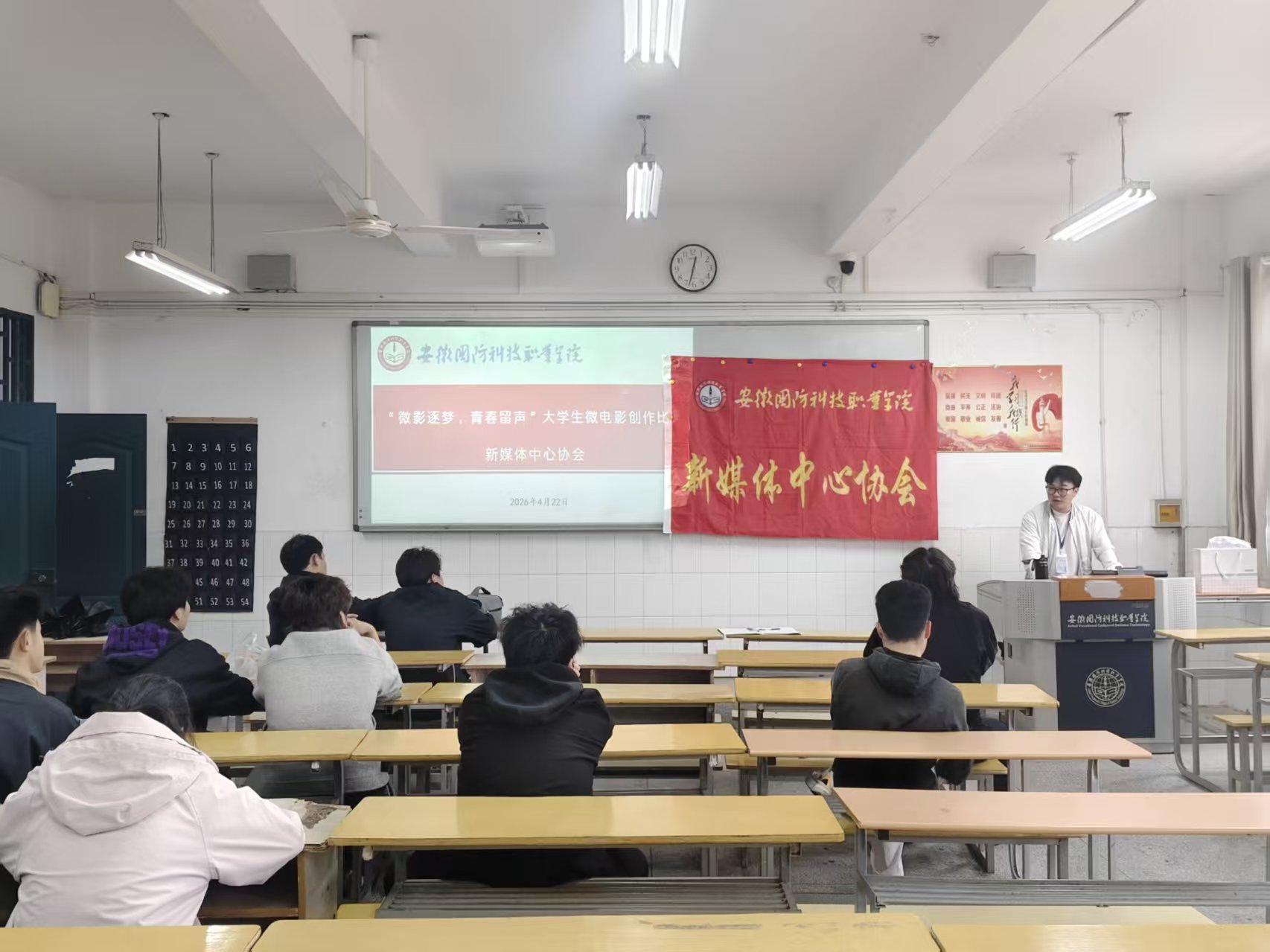 本网讯(学生通讯员:刘磊)为进一步丰富校园科技文化生活,激发青年学子的影视创作热情,响应学校第十七届大学生社团科技文化节“科技筑梦青春,文化润育校园”主题号召,4月22日,新媒体中心协会在二教106教室顺利举办“微影逐梦,青春留声”大学生微电影创作比赛。本次活动不仅是协会品牌项目的集中展示,也是社团科技文化节系列活动的重要组成部分。