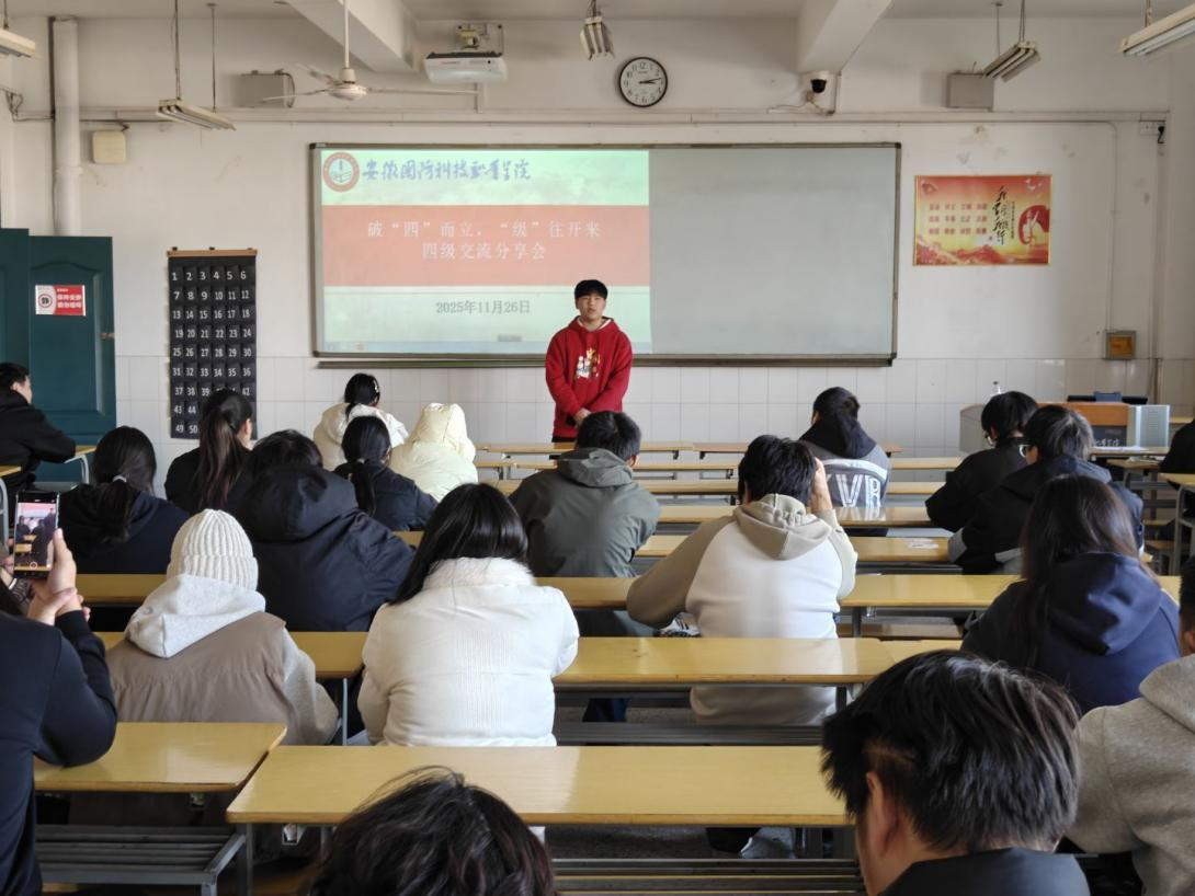 四级考试从来不是一场突击战,而是一场需要耐心和方法的持久战,此次英语四级的交流分享会的成功举办,为我校备考学子搭建了高效的学习交流平台,明晰了备考方向和备考方法,相信各位同学能从中汲取经验,全力冲刺四级考试,取得优异成绩。