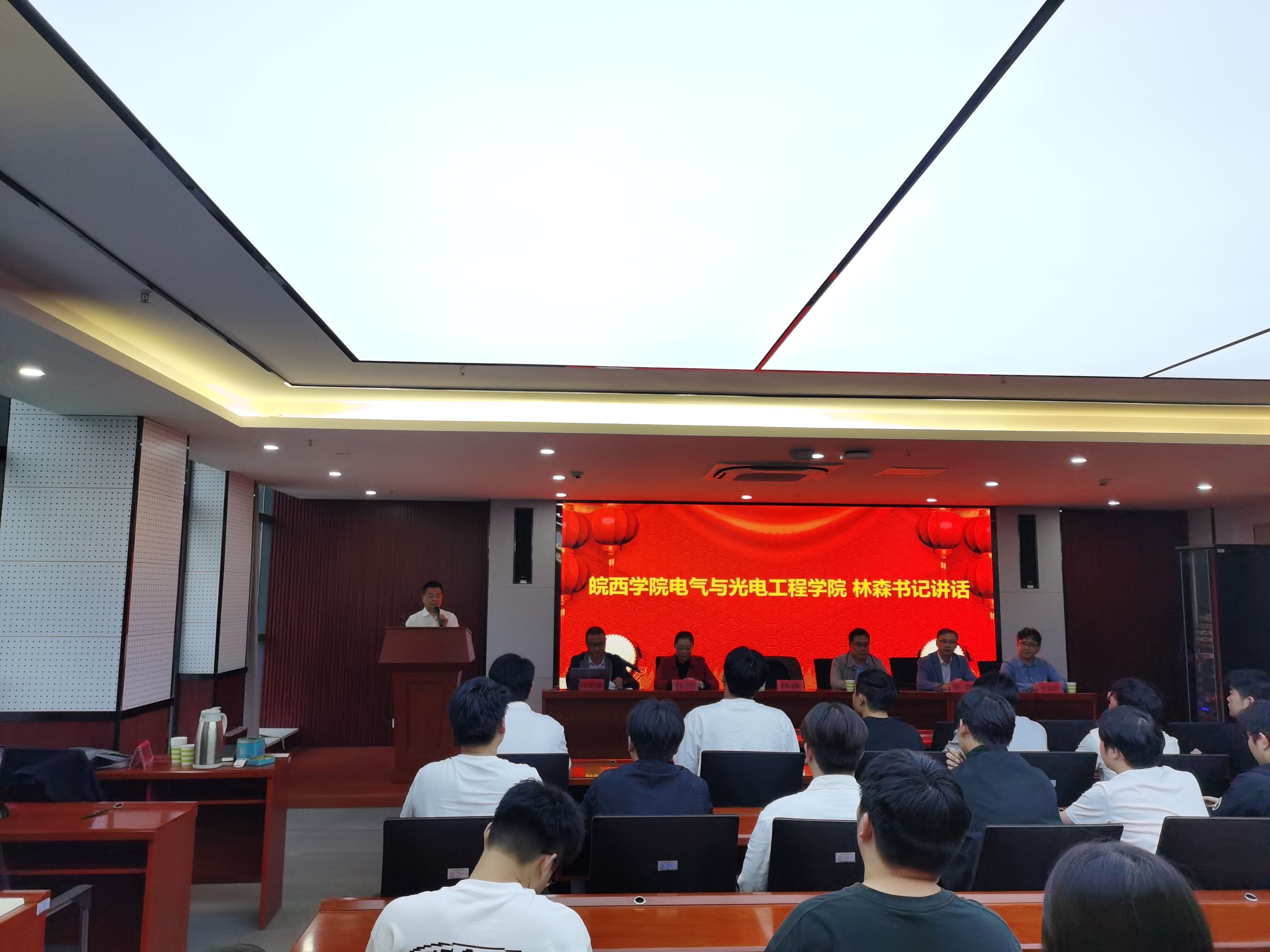 李翔首先代表全院师生对2025级54名新同学进入本科阶段学习表示热烈的欢迎和祝贺,他介绍了电气技术学院的办学特色、育人成效以及与皖西学院联合开展专升本人才培养的办学成果,阐释了安徽国防科技职业学院“厚德、强能、励志、笃行”校训精神的丰富内涵,希望同学们能够将校训精神内化于心、外化于行,在未来两年的学习中,既要夯实专业理论基础,又要注重实践技能提升,充分利用两校优质的教学资源和实训平台,主动探索、积极创新,以饱满的热情和昂扬的斗志迎接新的学习挑战,为实现个人理想和国家电力行业发展贡献青春力量。