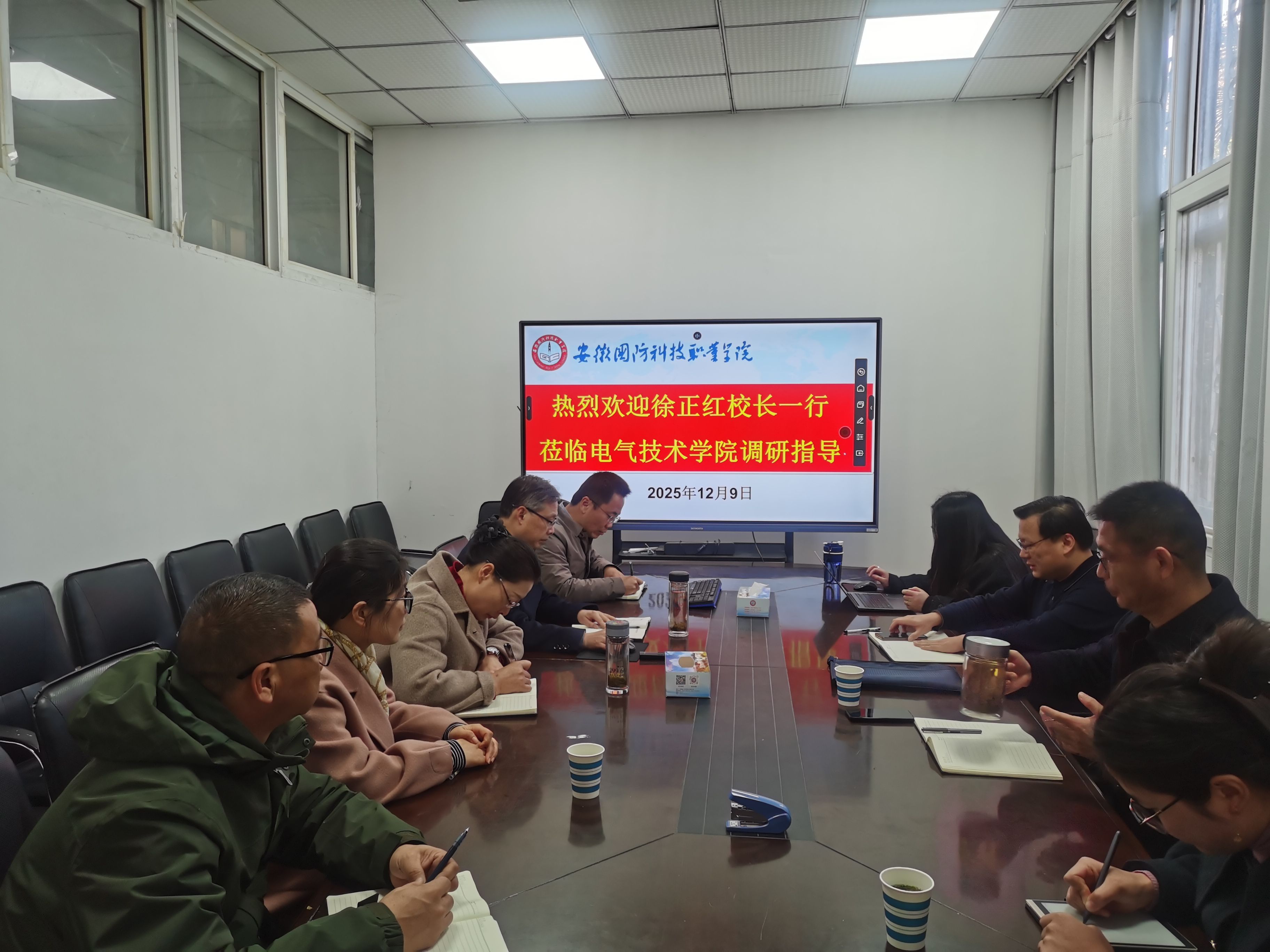 本网讯 12月9日下午,校党委副书记、校长徐正红带队深入电气技术学院,专题调研电气工程及其自动化专业职教本科建设筹备工作。校党委委员、教务处处长朱修传,科研处处长白斌丽,教务处副处长叶金芝陪同调研。