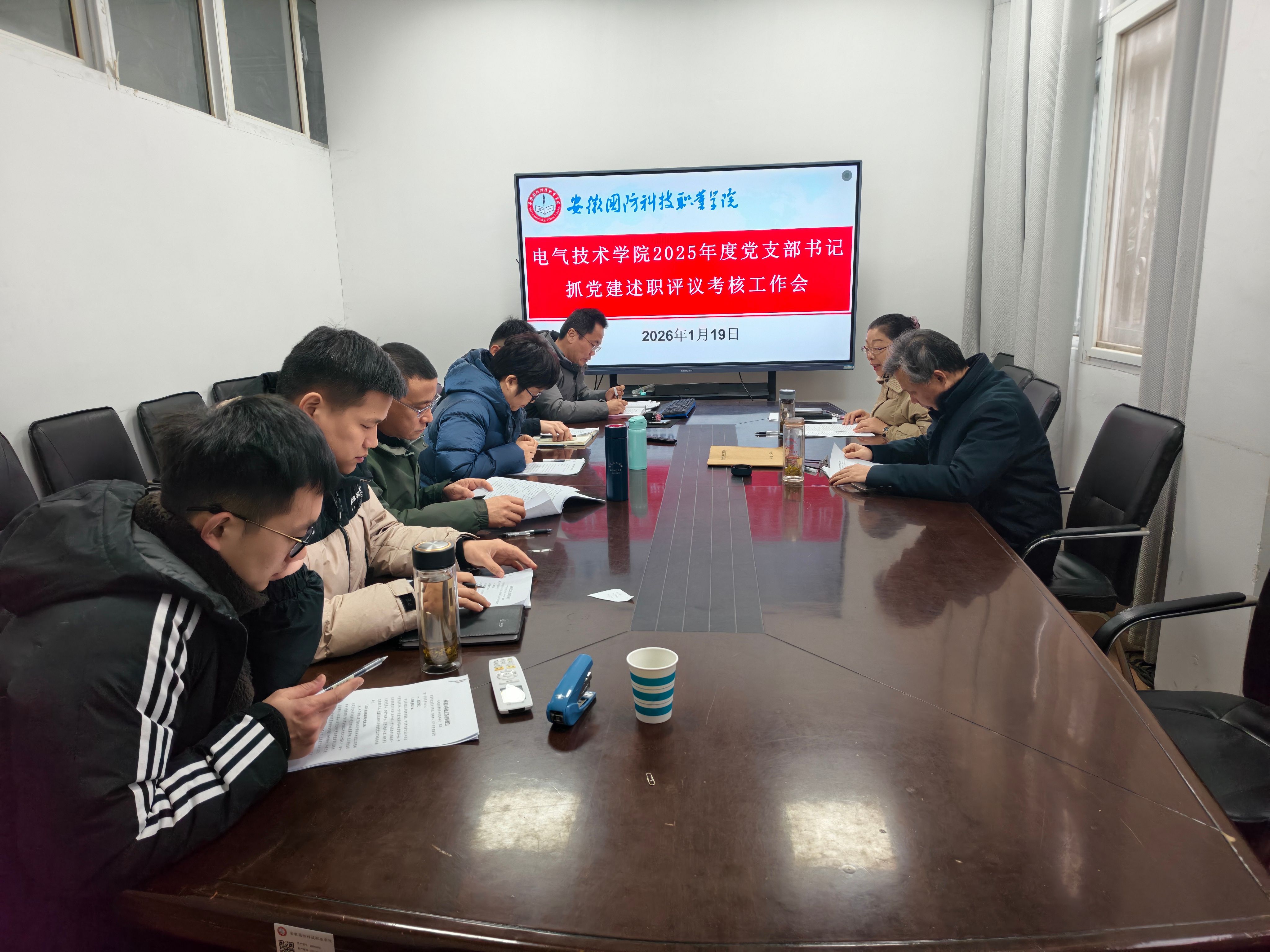本网讯 为全面提高学院基层党建工作质量,不断增强基层党组织政治功能和组织功能,根据学校《关于做好2025年度党组织书记抓党建工作述职评议考核的通知》(校组人函〔2026〕2号)工作部署,1月19日,电气技术学院党总支在知行楼102会议室召开党支部书记抓党建工作述职评议考核会议。学院党总支班子成员、各党支部书记及党员代表参会,会议由学院党总支副书记张丽主持。