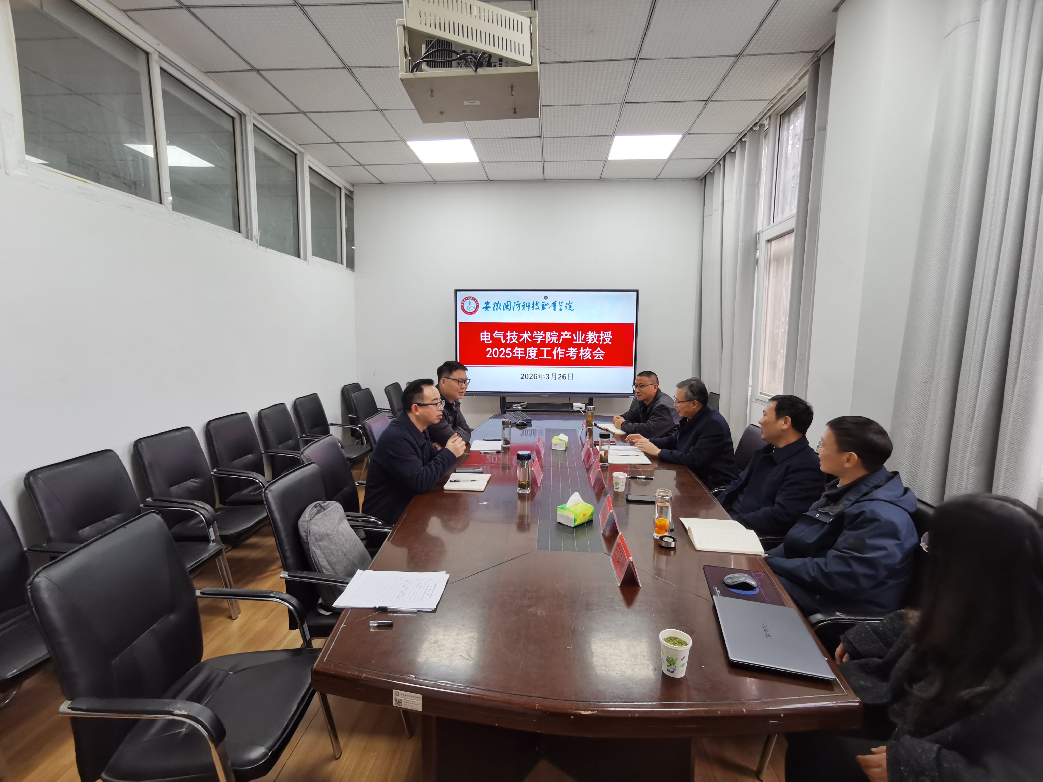 本网讯(电气技术学院 马骙)2026年3月26日下午,电气技术学院产业教授2025年度工作考核会及产业教授聘用签约仪式在知行楼102室顺利举行。校企合作办主任李中永主持会议,组织人事处副处长(主持工作)杨志清、教务处副处长白斌丽、电气技术学院院长李翔、副院长江治国、产业教授黄振东及青年教师代表张超参加本次活动。