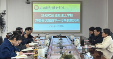 11月18日上午,合肥理工学校党委书记张良平一行我校交流,双方在秉心楼第一会议室围绕高职专业学院内涵建设开展深度研讨。校党委副书记、校长徐正红,教务处、学生处、招生就业办公室、机械技术学院等相关部门负责人参加交流会。