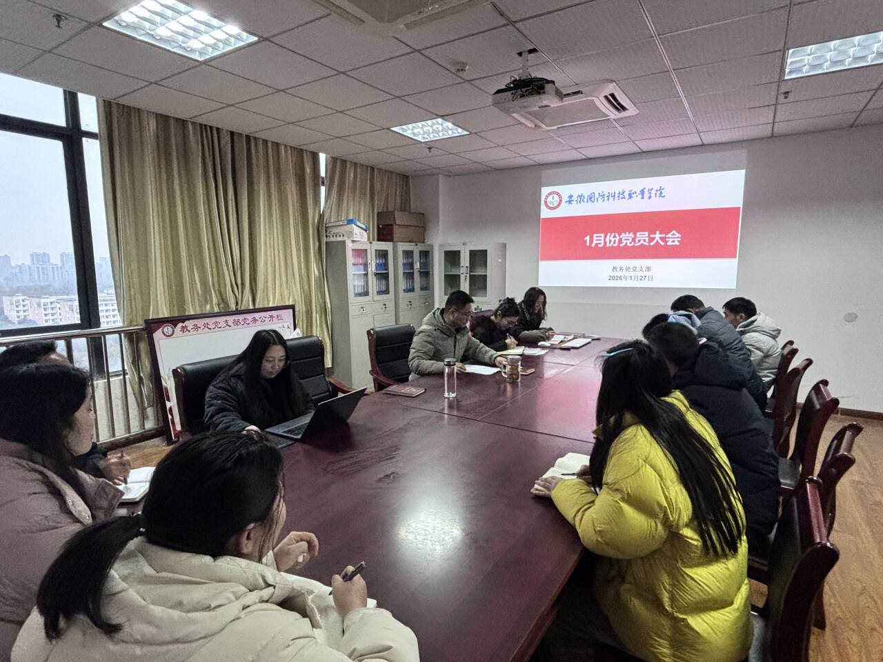 1月27日下午,教务处党支部于秉心楼 1206会议室召开1月份党员大会,全体党员积极参会。