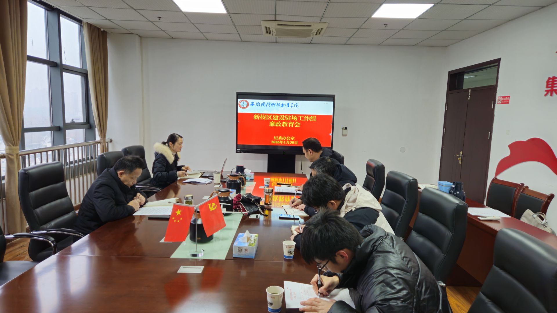 1月30日下午,校纪委召开新校区建设驻场工作组廉政教育会。校纪委书记丁守宝,纪委办公室和驻场工作组工作人员等参加会议。