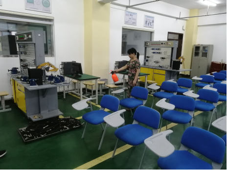 按照学校“二案八制”的要求。实训室管理员对21个实训室进行了一一清扫和消毒,并制定清扫和消毒计划,从地面整洁、设备按规布置、桌面、窗户整洁、座椅板凳摆放等方面确保师生实训教学环境,并要求管理员每天汇报实训室清扫及消毒情况,并进行日账登记。