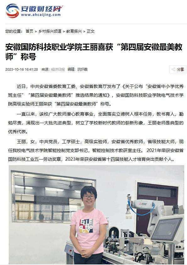 6、安徽财经网报道王丽喜获“第四届安徽最美教师”称号