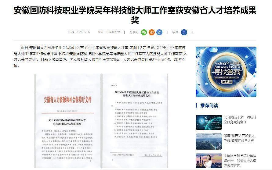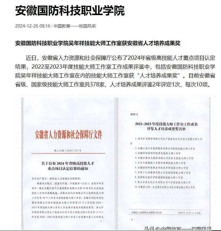 2、中国教育网报道吴年祥技能大师工作室获安徽省人才培养成果奖