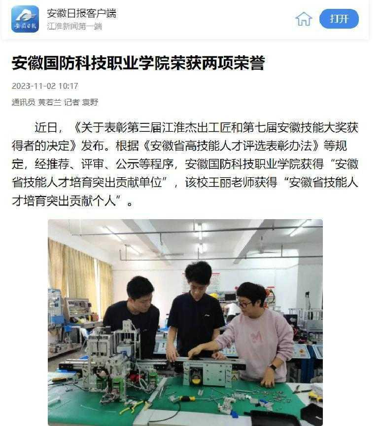 4、安徽日报报道王丽老师荣获“安徽省技能人才培育突出个人”