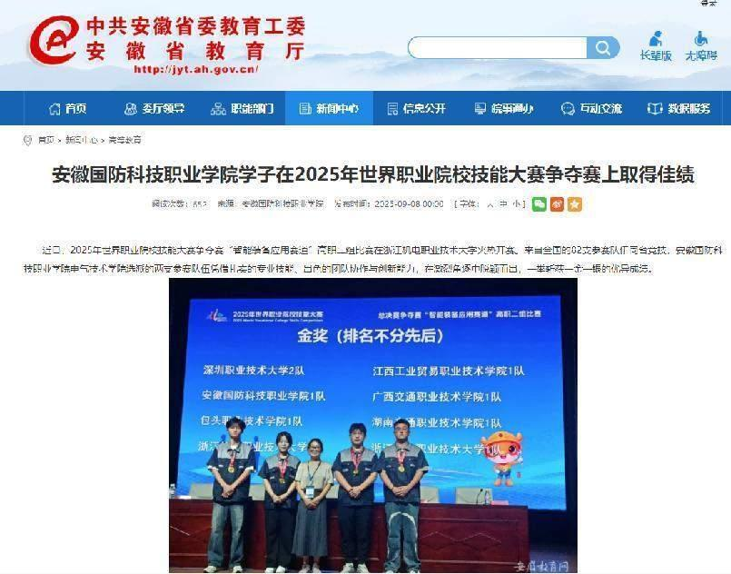 1、安徽教育网报道学院获得2025年世界职业院校技能大赛金奖